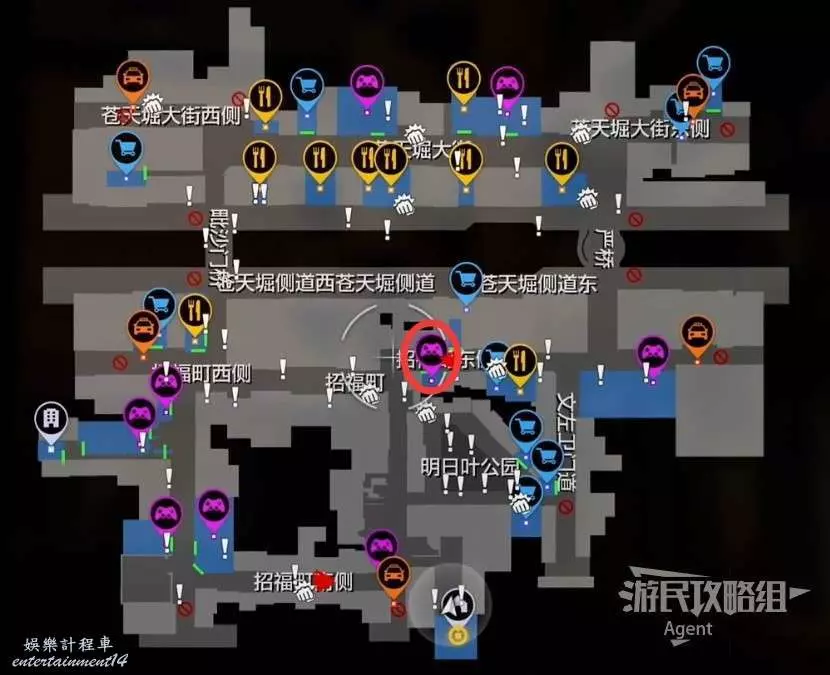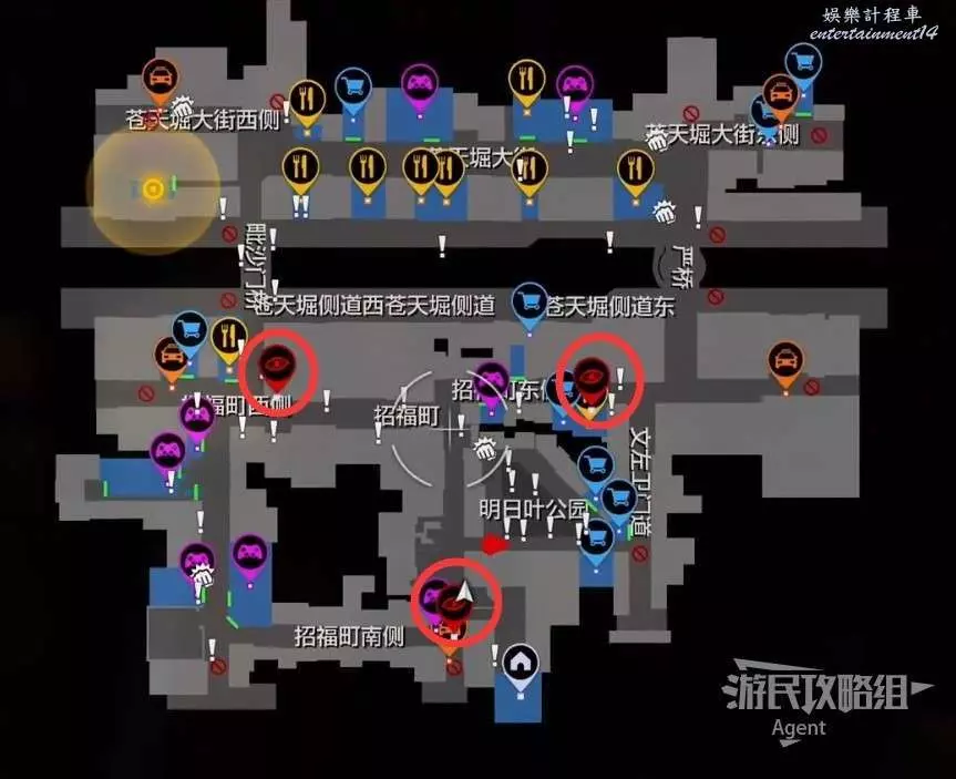 城堡的夜店在下圖位置,有三個小姐姐。