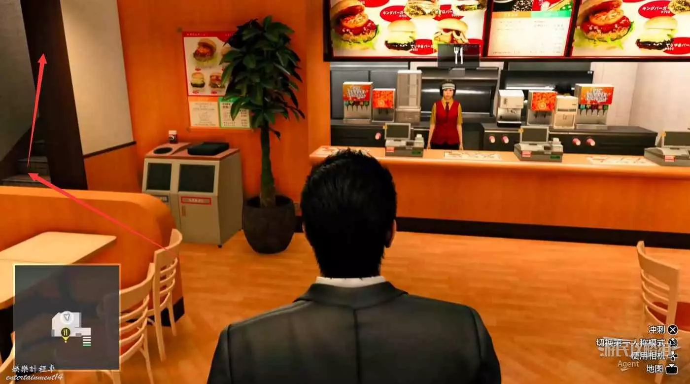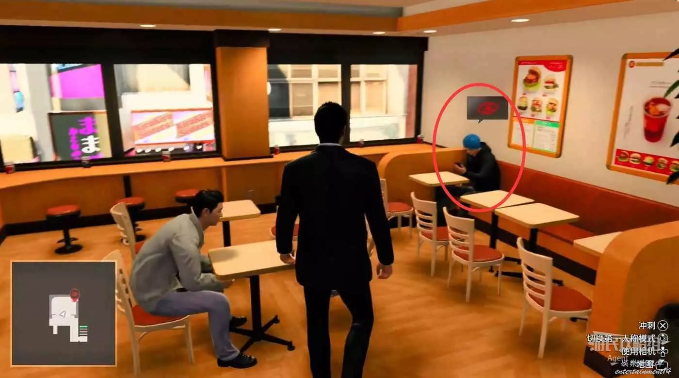 進入漢堡店,然後走樓梯上樓,找到委託人。