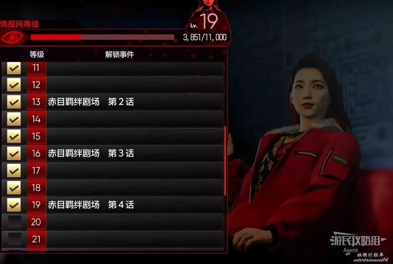 之後做支線委託,情報網等級13、16、19分別會解鎖赤目羈絆劇場第2、3、4話,赤目的好感度就拉滿了。