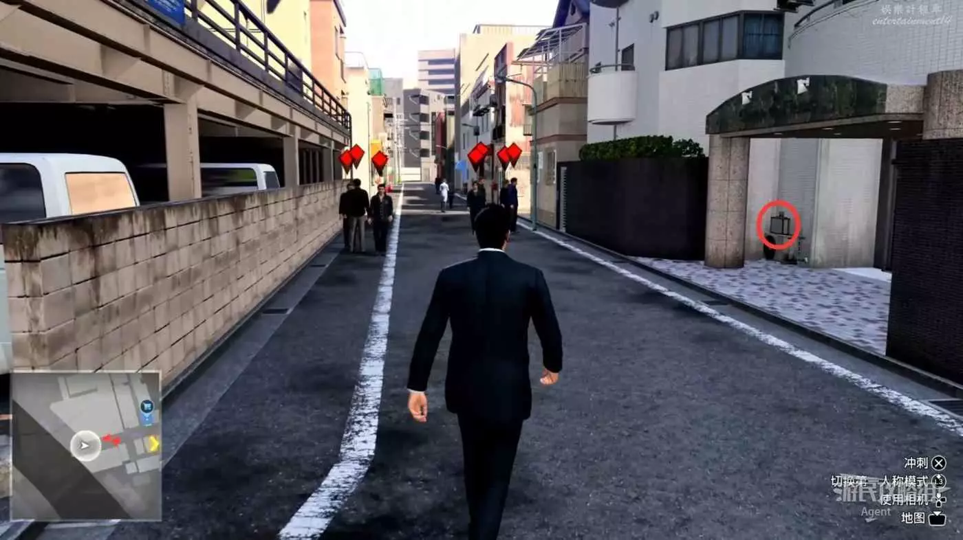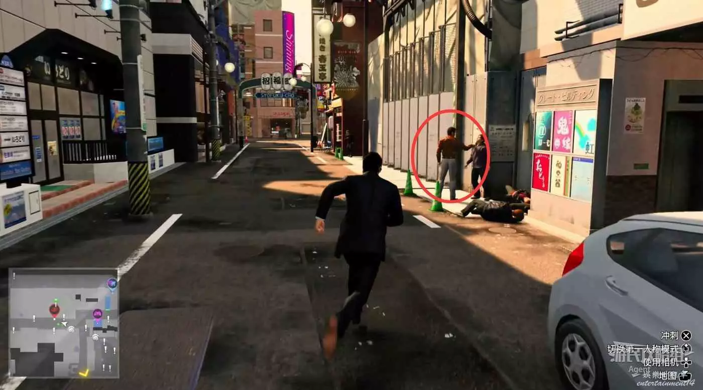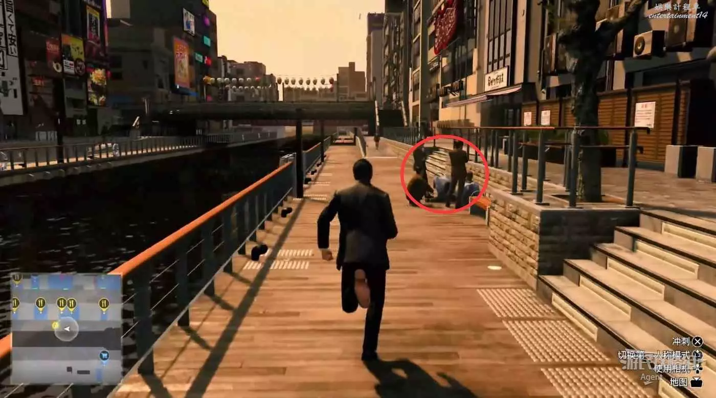 到橫濱調查星龍會,往前走拐角遇到小混混,可以打也可以直接跑掉跳過戰鬥。注意路邊常會有可以撿的物品,有的是藥品補給,有的可以賣錢。