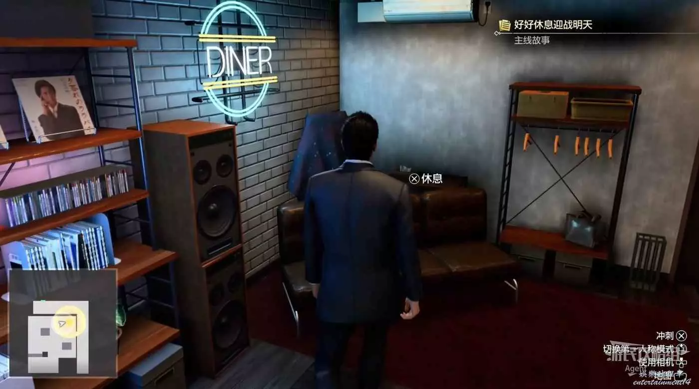 擊敗小混混後見到赤目,和赤目對話後在沙發上睡一覺。