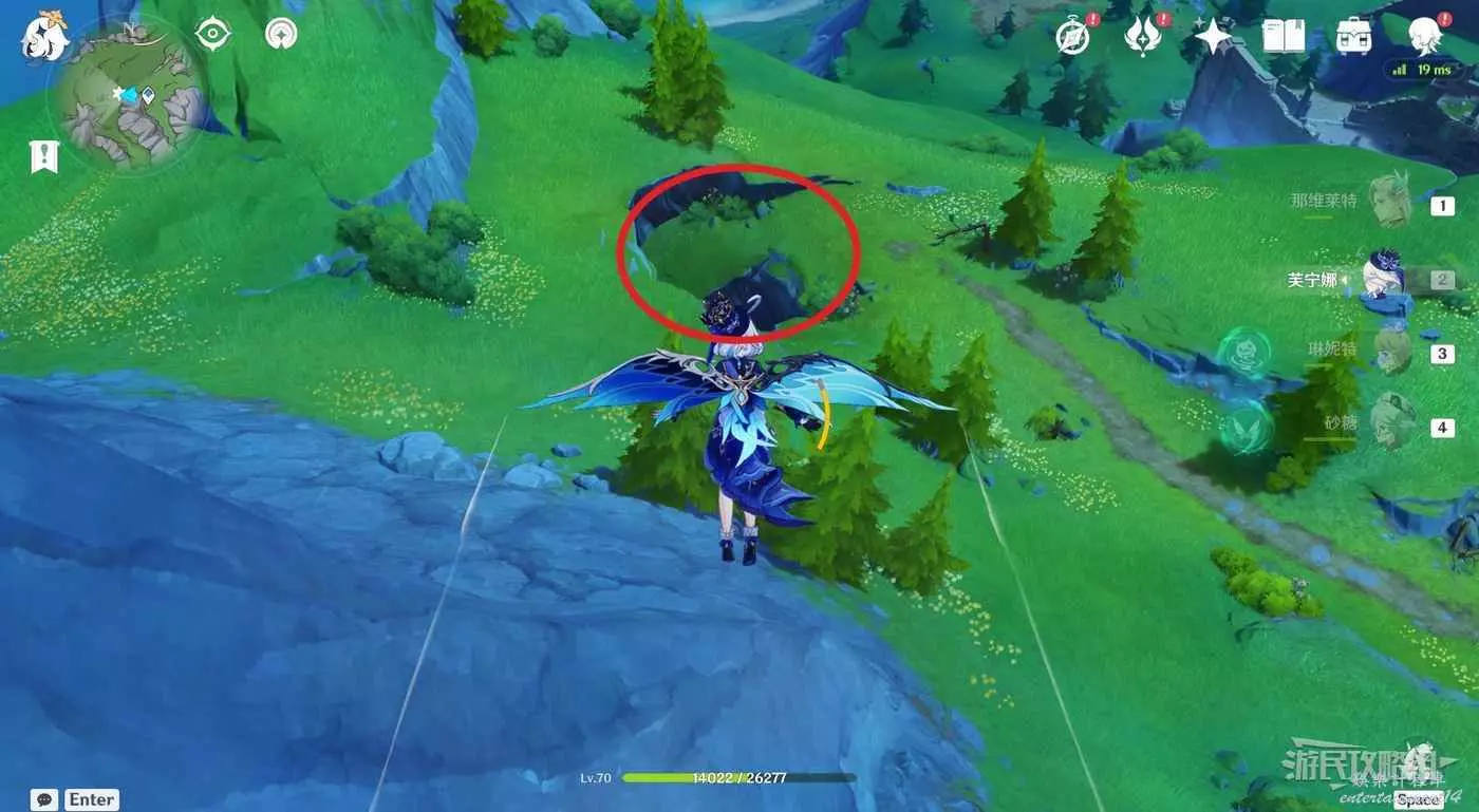 傳送到楓丹動能工程科學研究院區的地圖BOSS實驗性場力發生裝置東邊的傳送錨點,然後往標記方向飛,洞口就在地上。