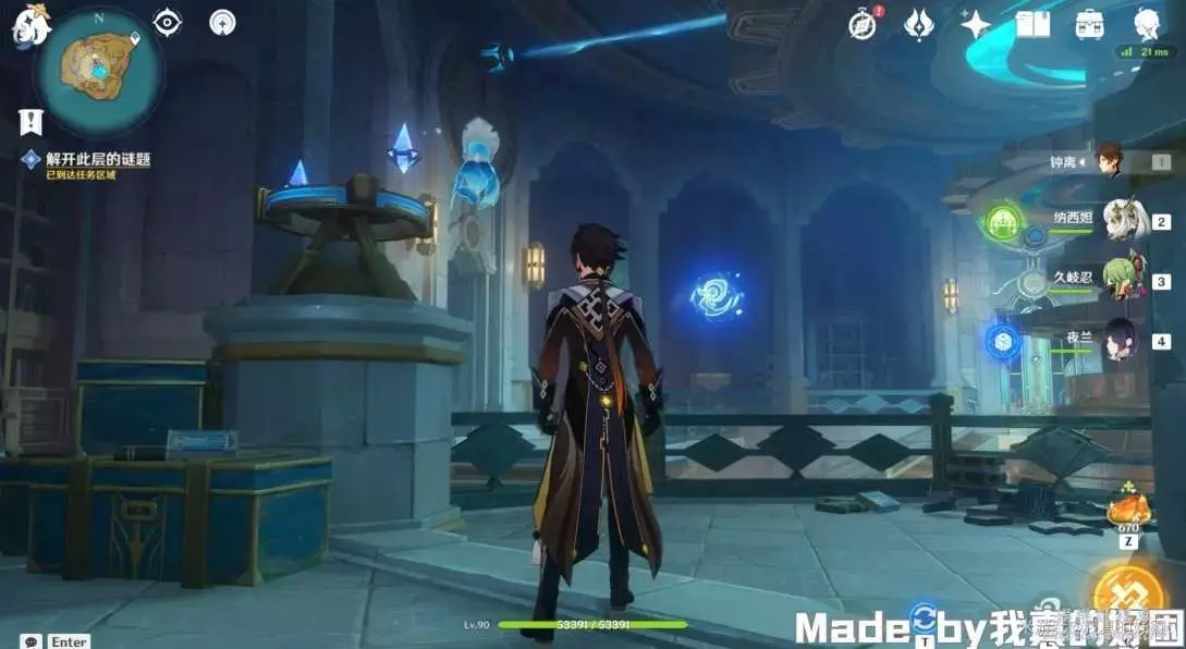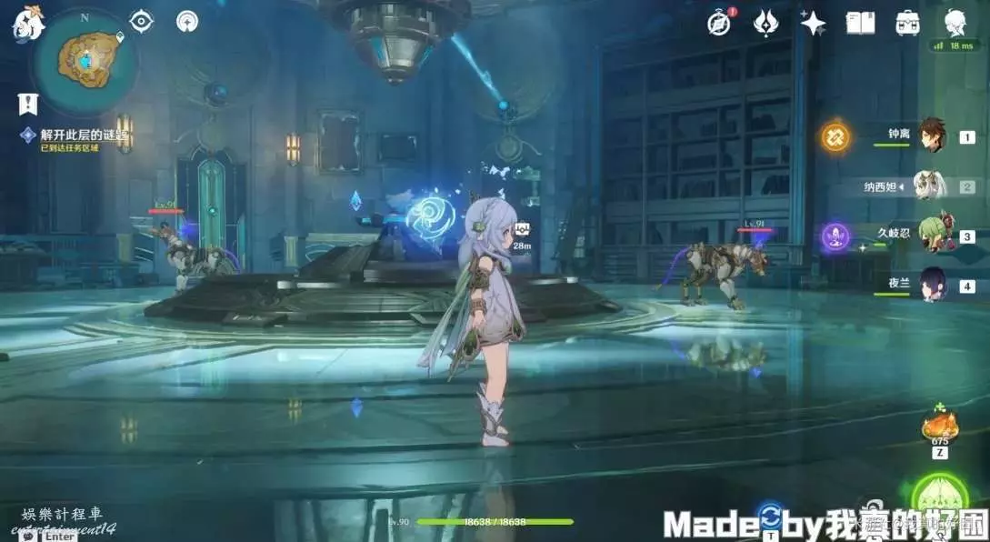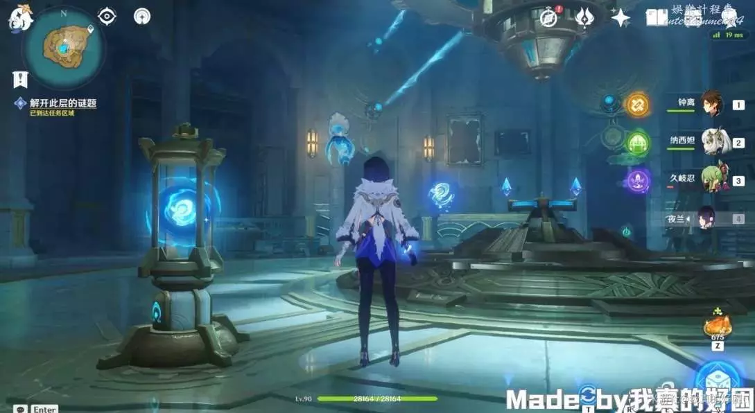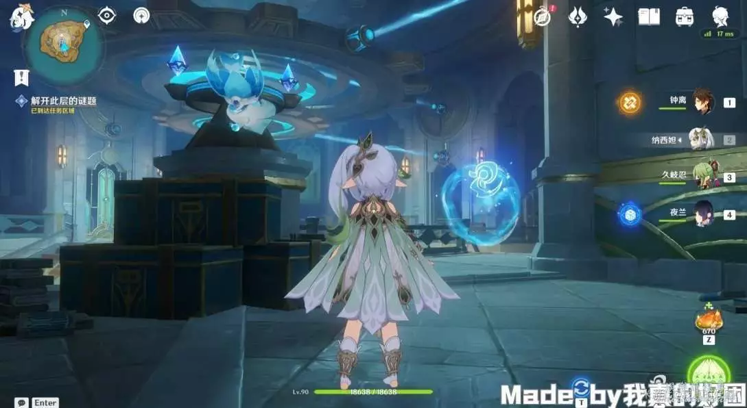 14、返回原處,攻擊裝置,使下方光束對準中間房間,然後去右邊房間,啟動機關,然後返回原處,攻擊裝置,使上方光束對準中間房間,最後來到左邊房間,啟動機關,中間房間打開,拾取根源之輪,獲得1珍貴寶箱。