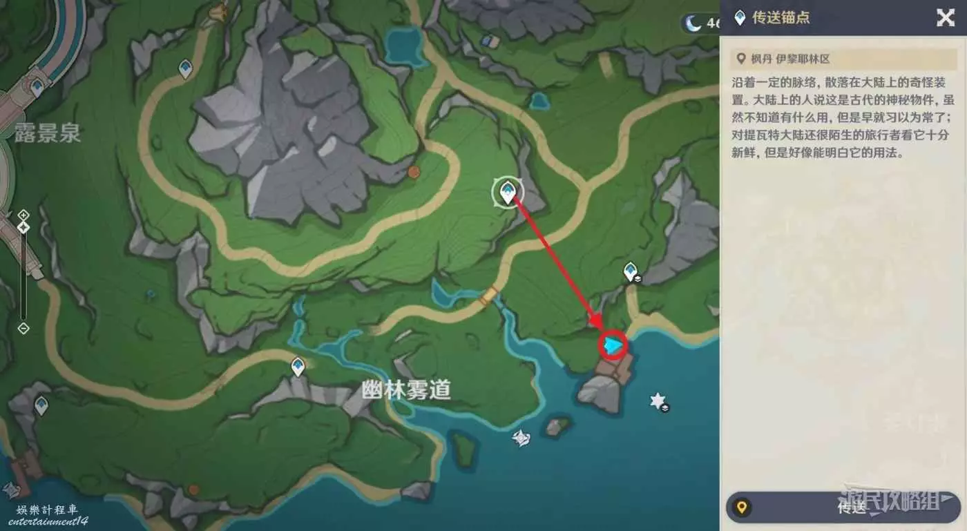原神 (Genshin Impact) 4.2隱藏傳送錨點開啟方法 10 11 月 2023-11-10 廣告 作者:瑞破受氣包 來源:遊民星空 傳送到幽林霧道右上方地上傳送錨點,然後往東南海岸邊擱淺的船的方向飛。 到達船的甲板上可以看到有一口大炮,大炮旁邊會出現一個名為【佩爾曼雅】的女僕NPC。與她對話兩次,第二次她會提出三個問題,正確答案如下。 佩爾曼雅正確答案 ①三張 ②三個 ③海露花 正確回答三個問題後,操作大炮,不用調整方向直接開炮。炮彈會在山底炸出一個洞口。 進入洞口可以看到一個精緻的寶箱,以及一個傳送錨點。