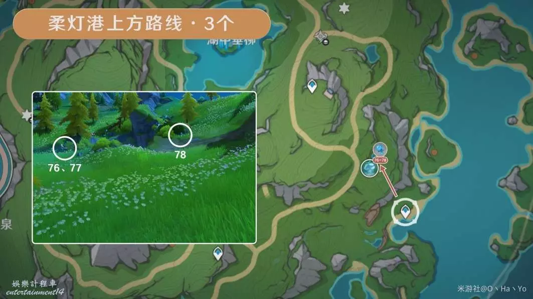 全圖找完,優蘭尼婭湖路線17個+湖中垂柳路線42個+湖中垂柳下方路線6個+幽林霧道路線10個+柔燈港上方路線3個=共計78個。