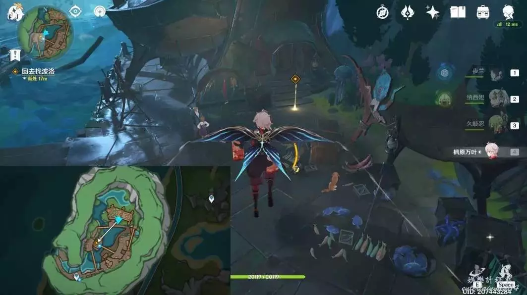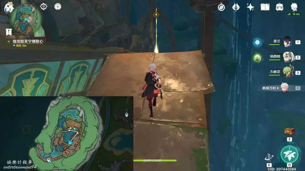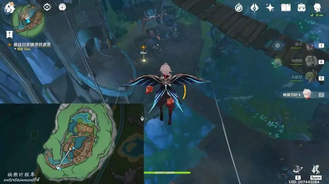 往地圖的西南方向飛,前往下層平台,與劇團對話4分鐘左右