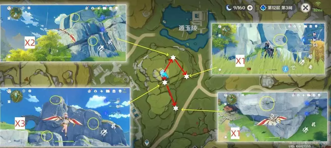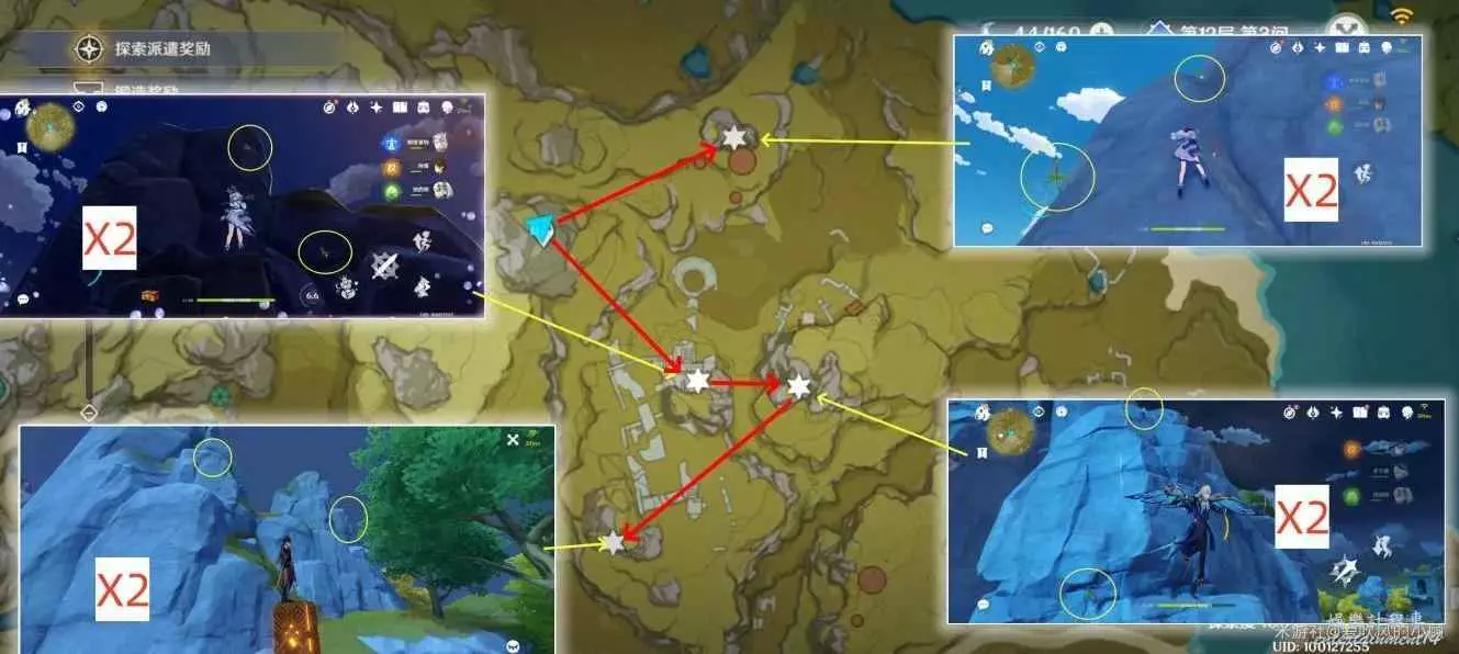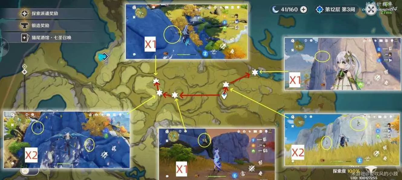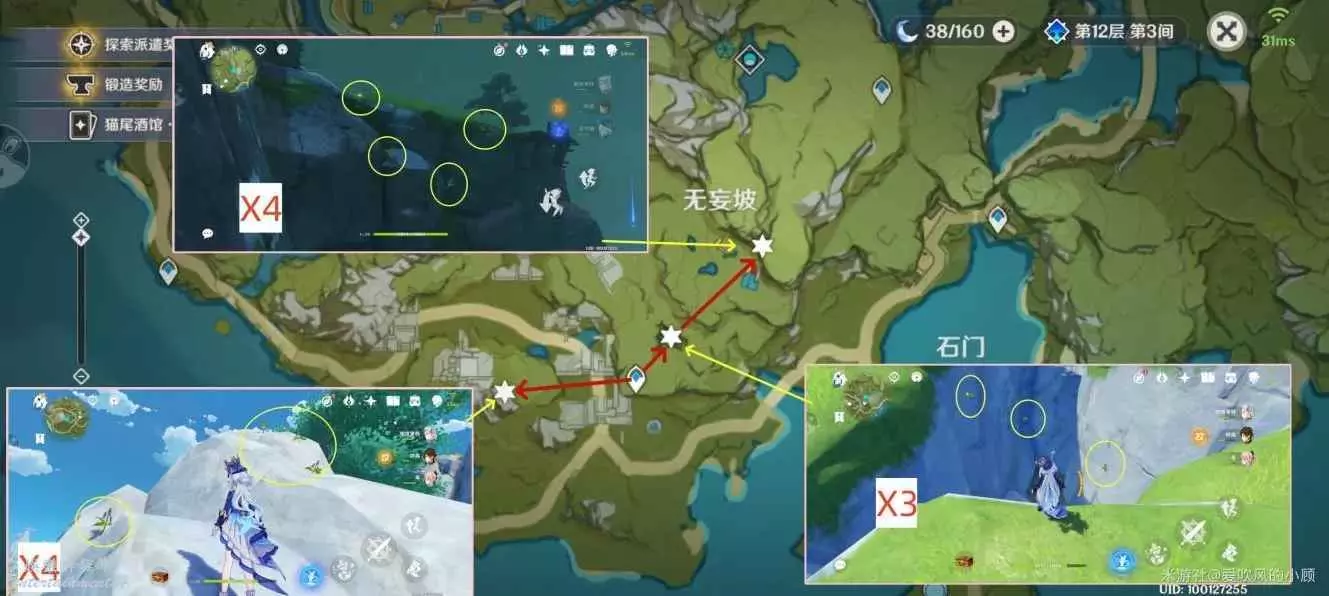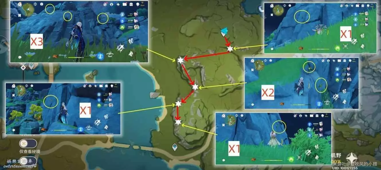 3.(爬山)傳送至該區域中心地帶傳送點,按路線採集,共12朵