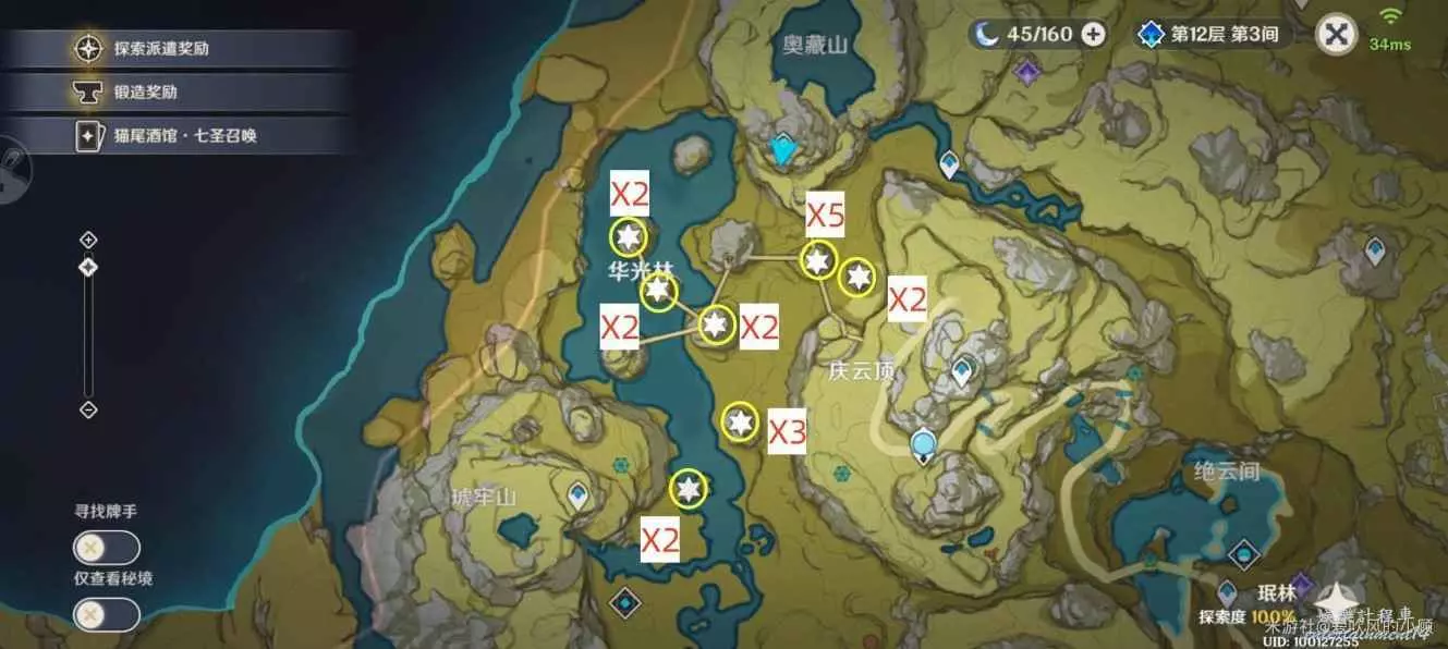 5.位於華光林的山峰山腰處位置(此處建議攜帶七七),共18朵