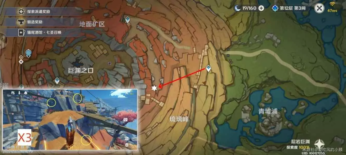 1.傳送至層岩巨淵地表入口處,共3朵