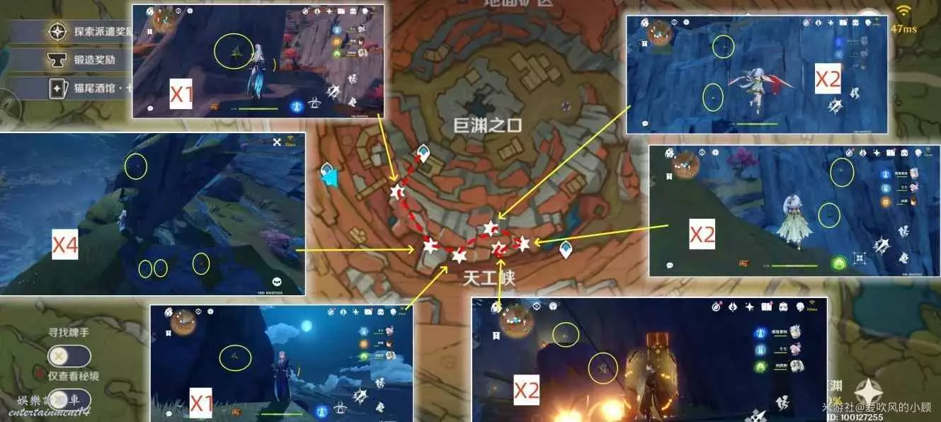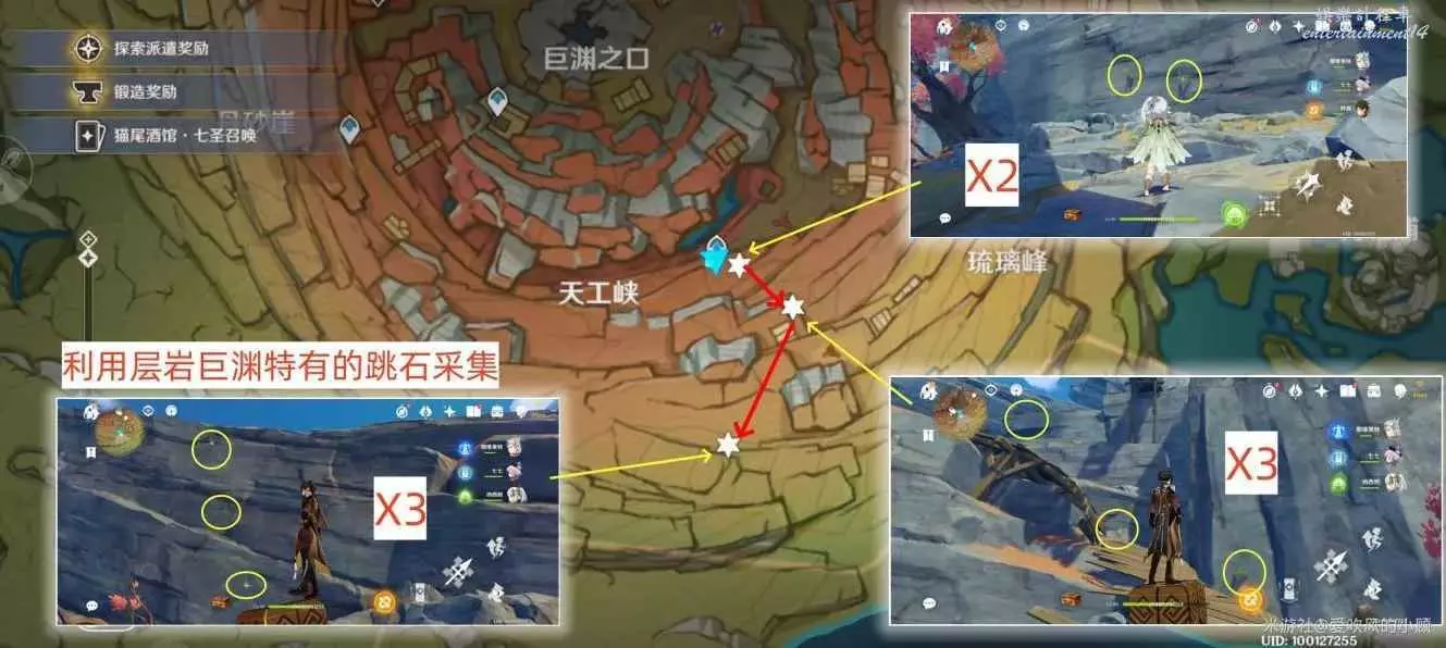 2.傳送至天工峽右側傳送點,向上採集,利用跳石爬山,共8朵