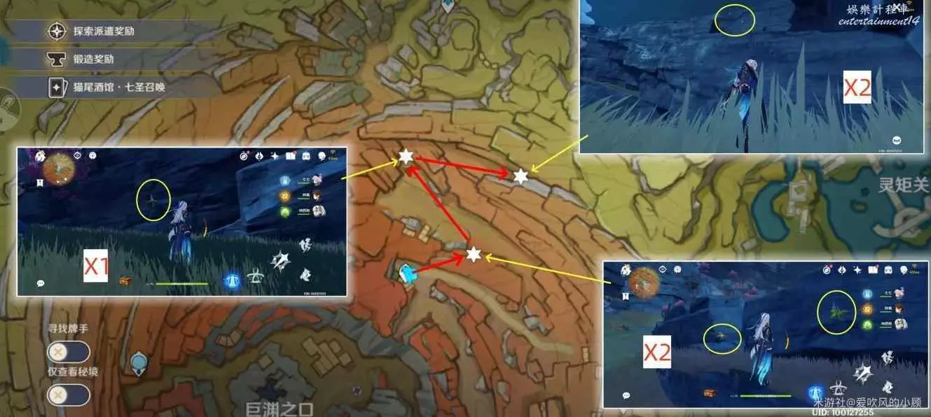 3.位於靈矩關右側位置,兩處傳送點採集,共13朵