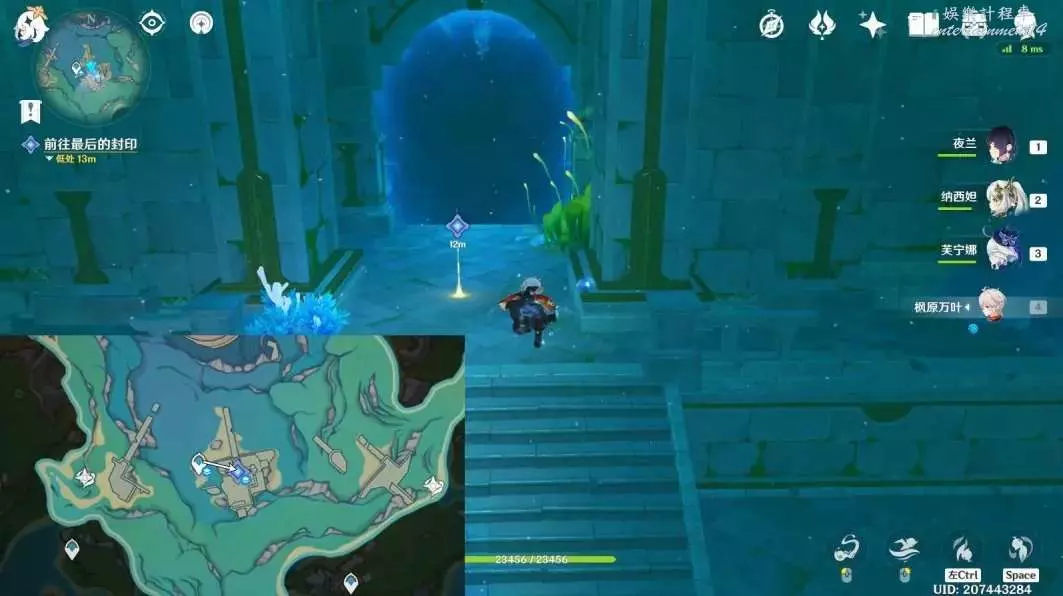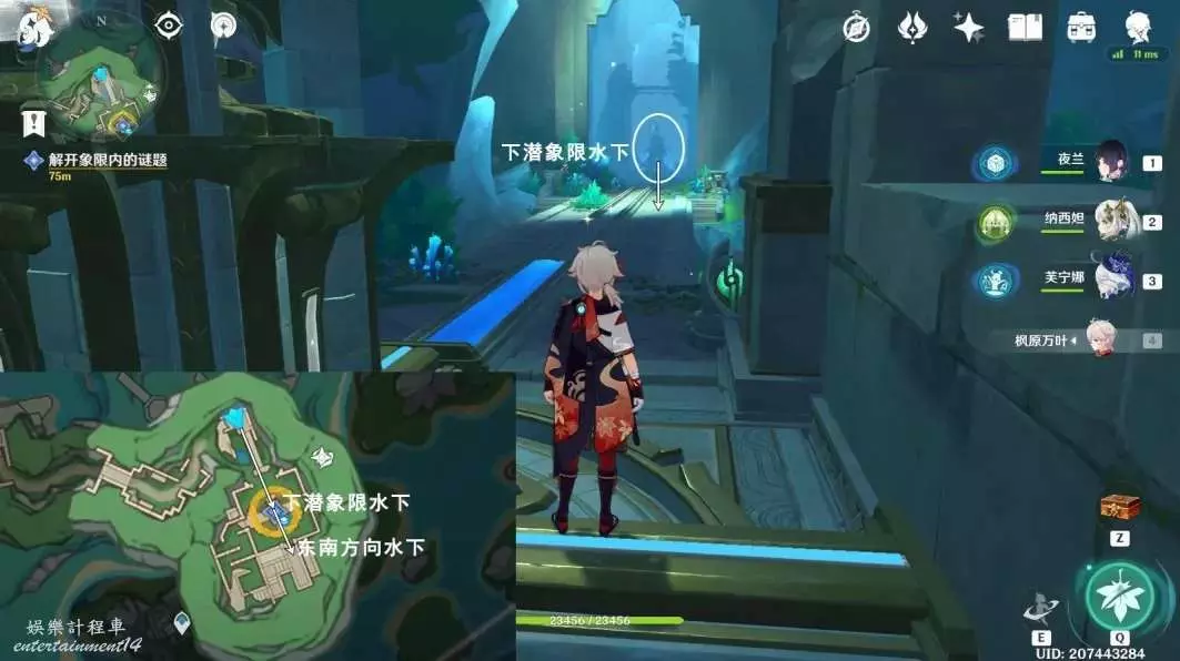 傳送秋分山東側東方向水下錨點,前往遺跡門口