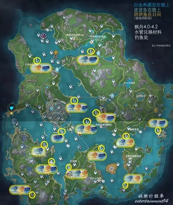 釣魚規則不必多陳述了,釣完後現實時間三天一刷新,遊戲內時間早(6:00a.m.)晚(18:00p.m.)可切換,釣完了閑著去別的世界釣即可。