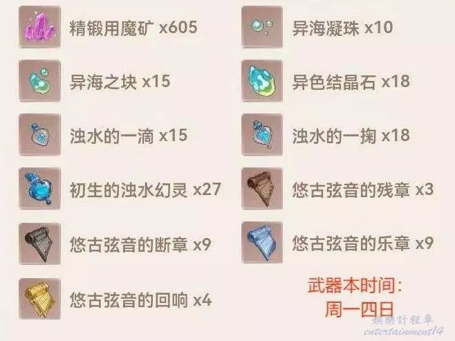 武器本在週一週四周日,按需刷取