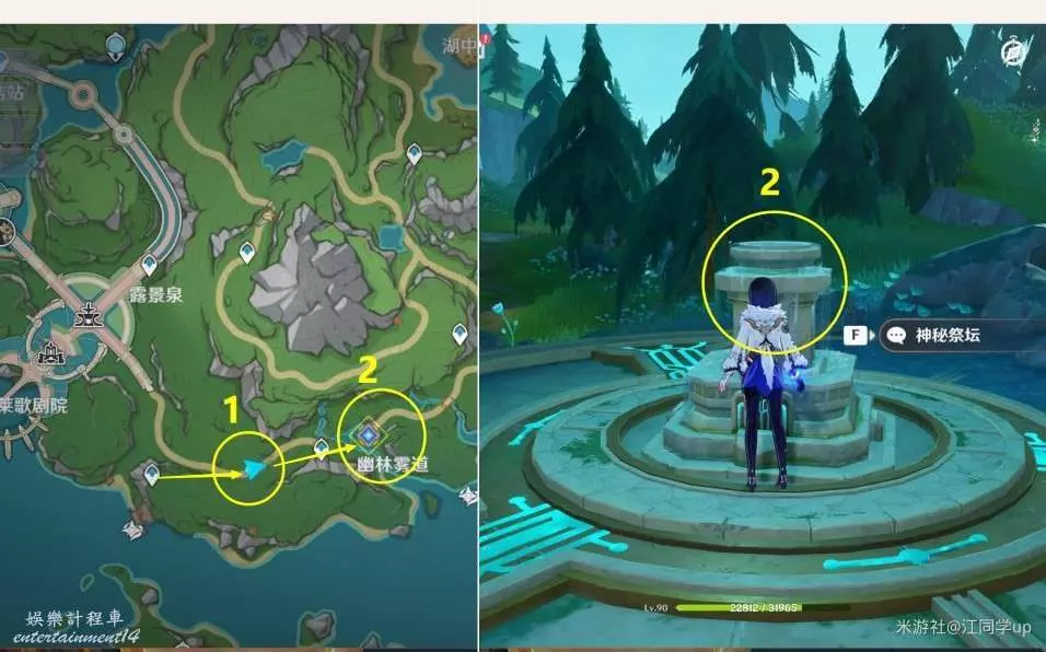 (2)然後追蹤任務先去任務點1後,再去任務點2【神秘祭壇】位置,和【神秘祭壇】互動後,需要去周圍3處地方完成解密,3處地方的具體解密大家可以查看下面的影片解說攻略,完成3處地方的解密後,再回到【神秘祭壇】這裡拾取第1個【淚滴之鑰】後,該階段任務結束