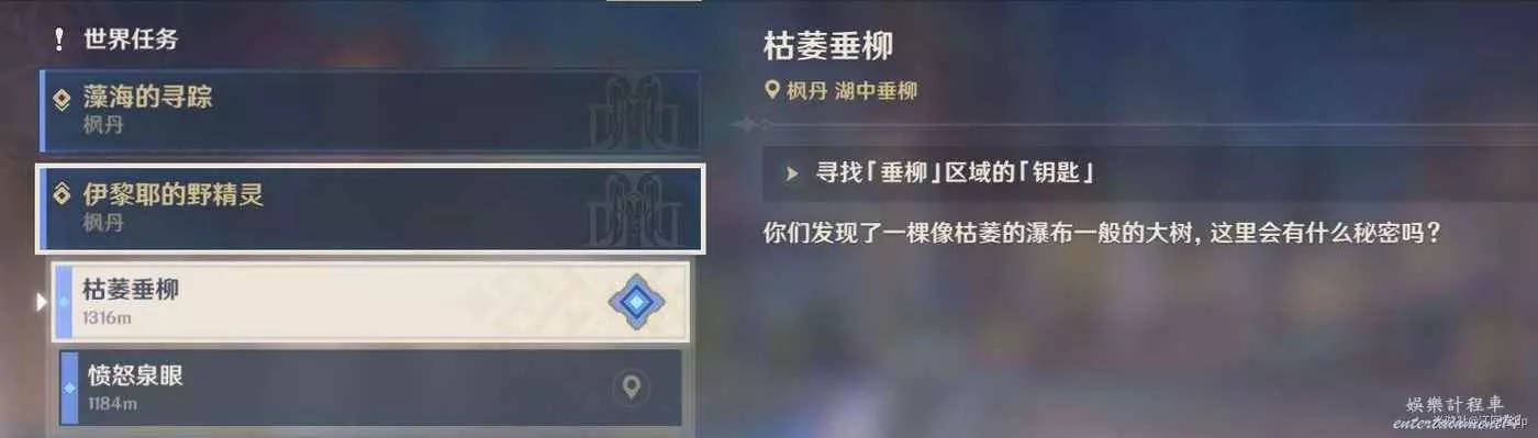 (1)完成上面第1階段後,任務會分成2個子任務,我們按順序先去做【枯萎垂柳】