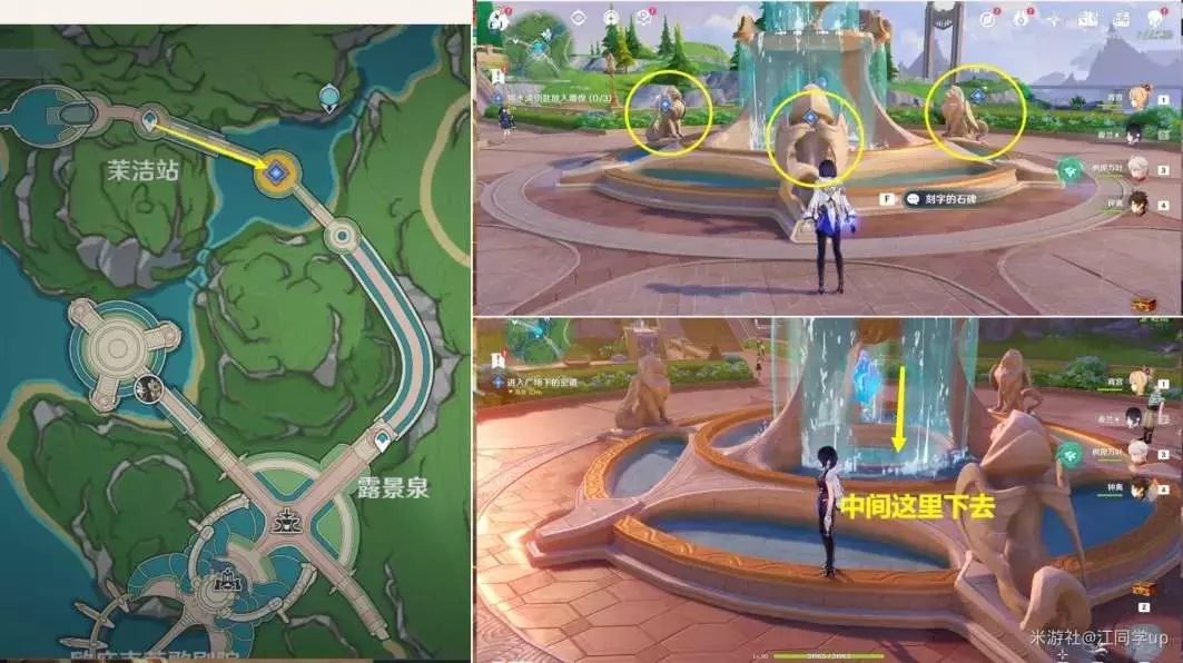 (2)追蹤任務來到下圖噴泉位置,將之前獲得的3個【淚滴之鑰】,分別放入下圖噴泉周圍3個位置後,即可打開噴泉中間位置,然後從噴泉中間位置下去最底下的水下
