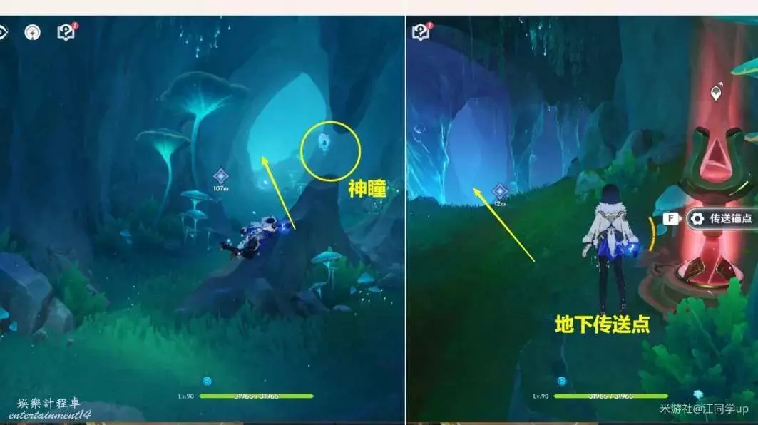 (3)來到最底下的水下,下面有個華麗寶箱可以拿了,然後進入旁邊的【洋流】,後面還會出現藍色加速圈,一直追蹤任務去【地下傳送點】任務點位置即可,路上有1個神瞳順便拿了
