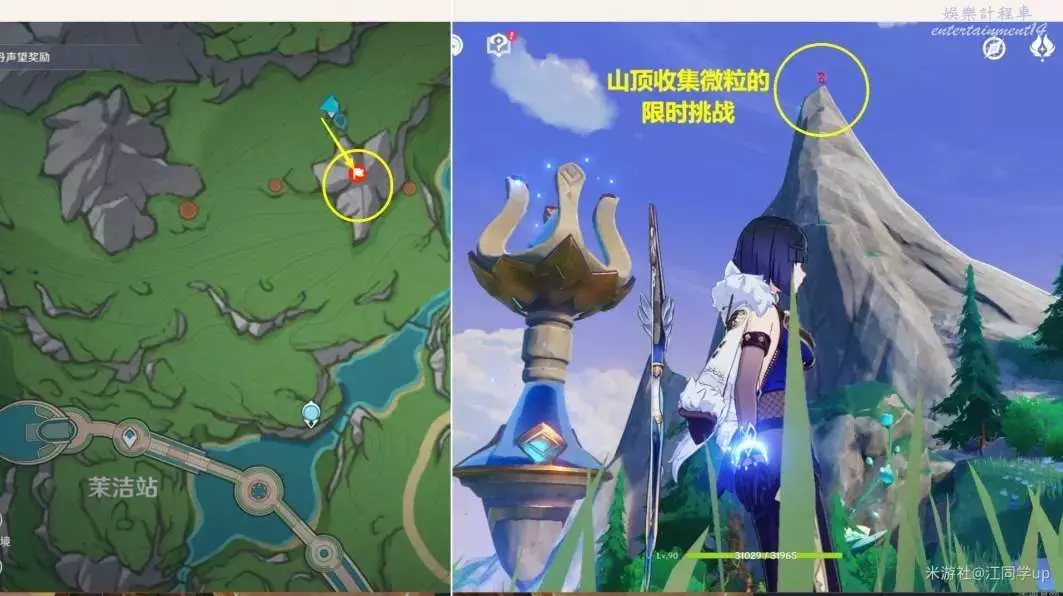 (1)來到下圖位置,完成山頂的收集微粒挑戰後,開箱獲得,山頂有個神瞳可以順便拿了