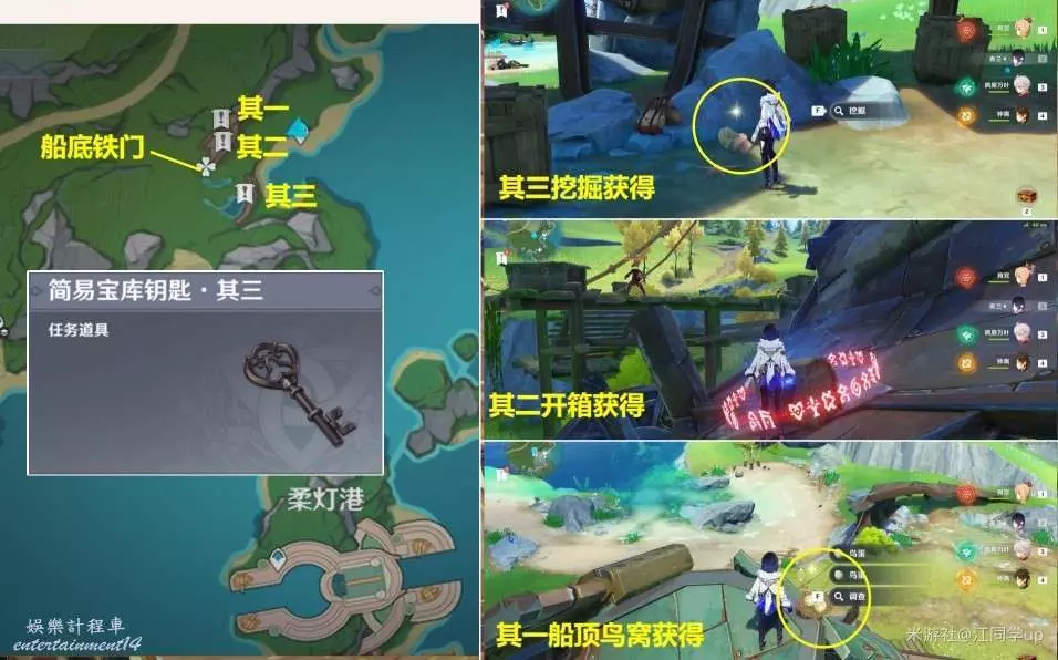 (1)收集第6個【幽靈枝】之前,我們需要先去下圖3個位置收集3把【簡易寶庫鑰匙】,其中其二寶箱打了對面的盜寶團即可解鎖