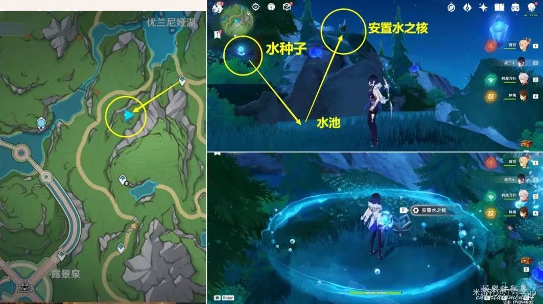(1)來到下圖位置,拾取【水種子】,然後進入下面的水池裡面等一會後,【水種子】就會變成大水圈【水之核】,然後將【水之核】放到上面的裝置裡面