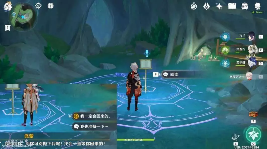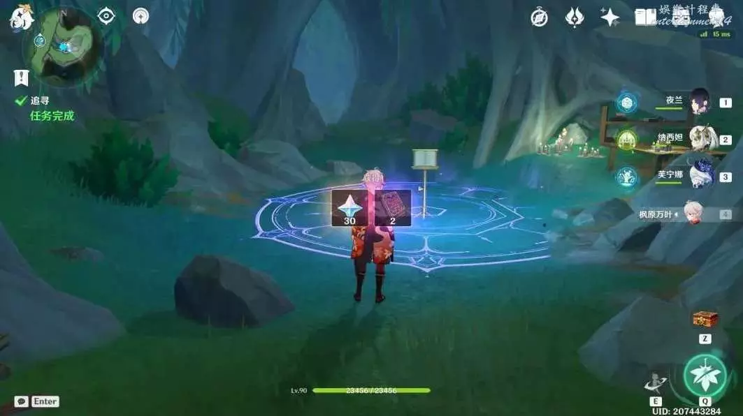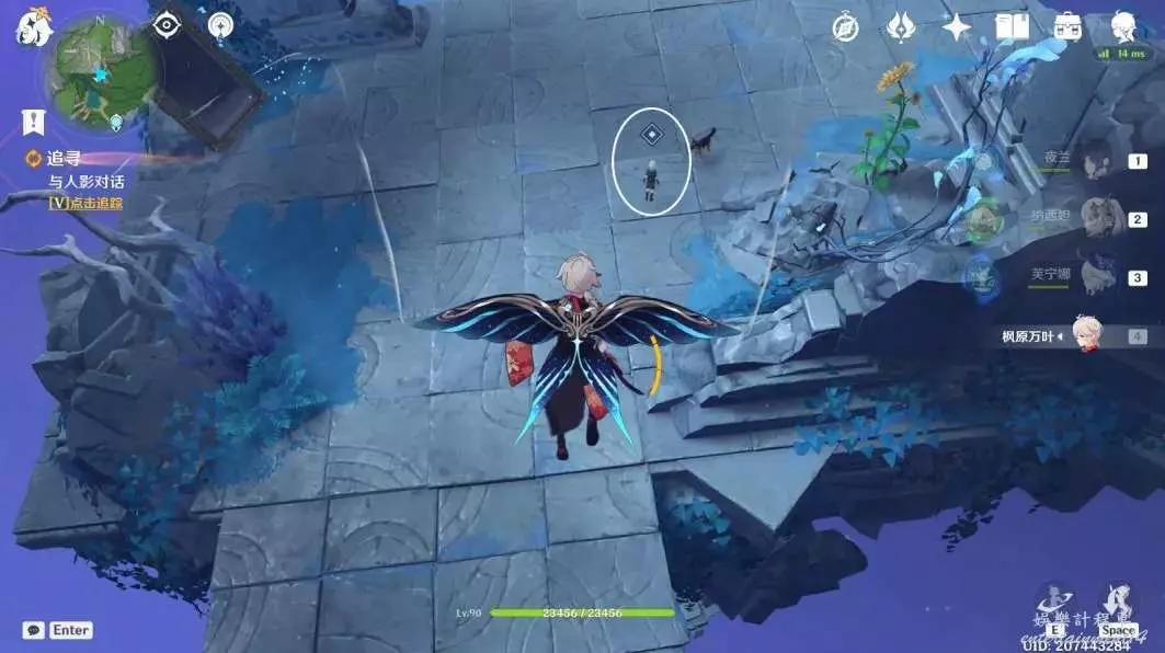 與派蒙對話結束,完成任務「追尋」
