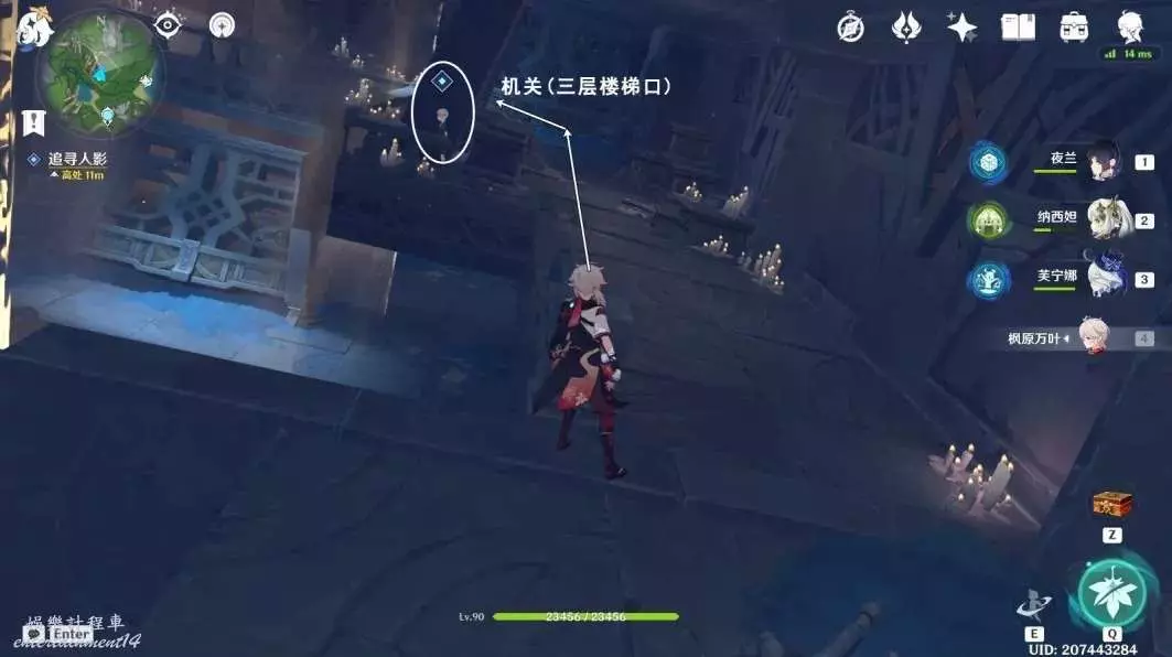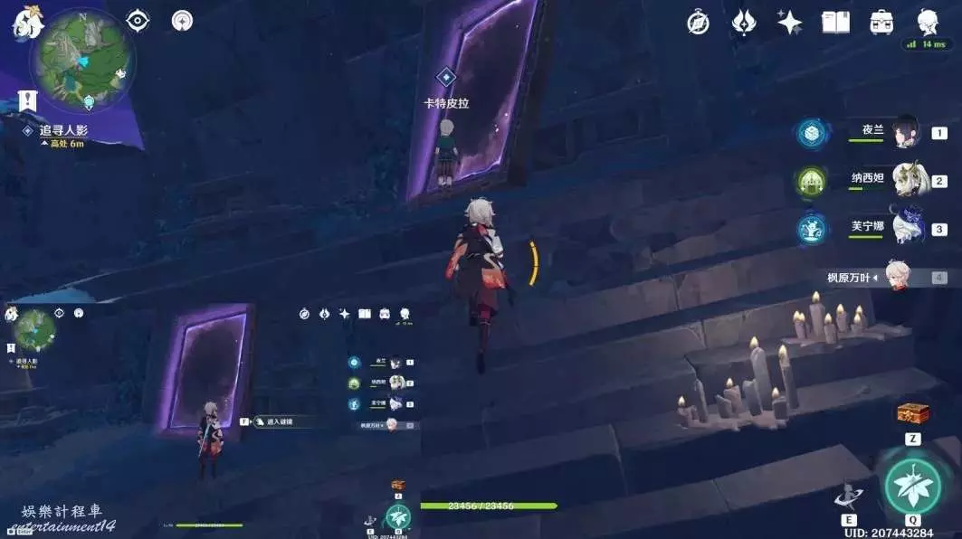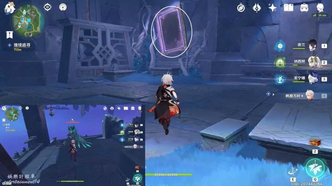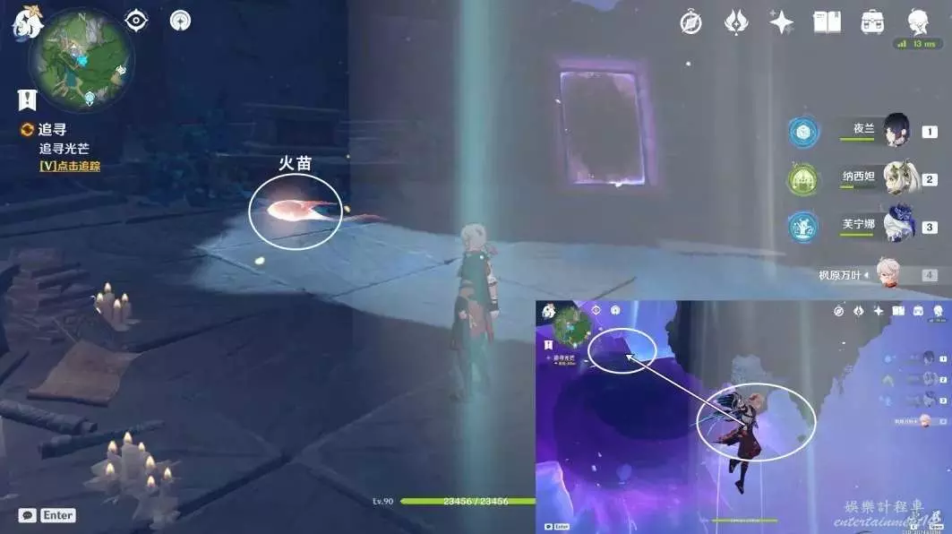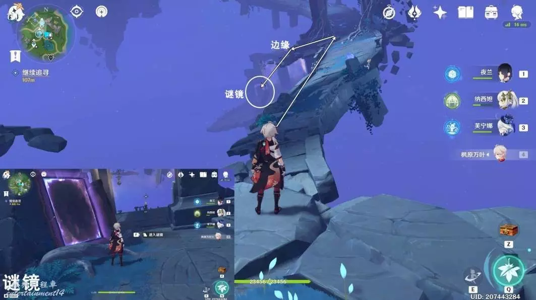 按圖中指引路線走,前往下方平台上,進入謎鏡