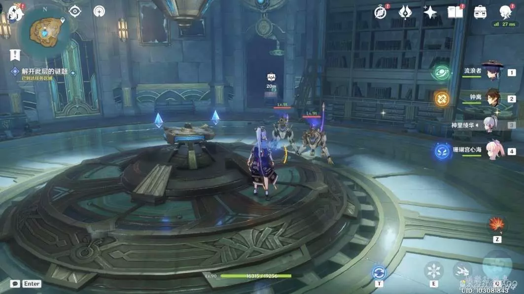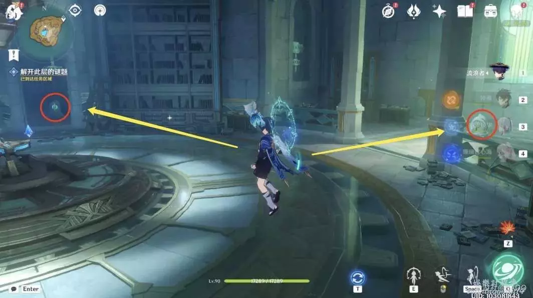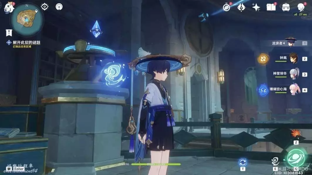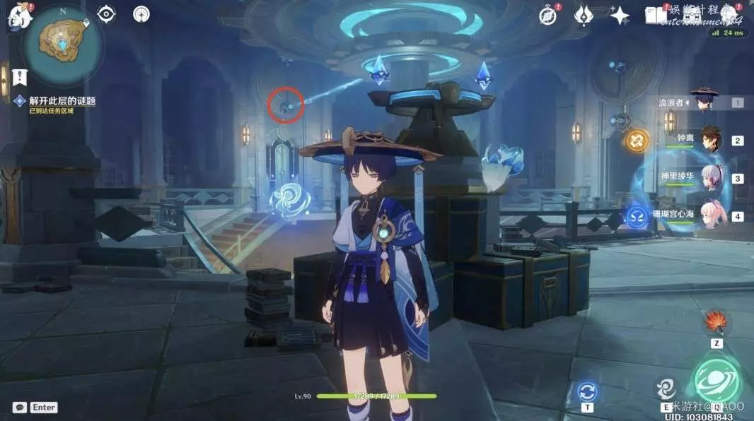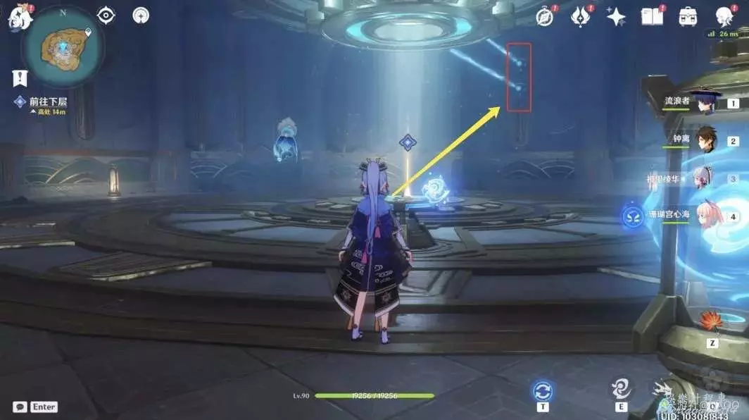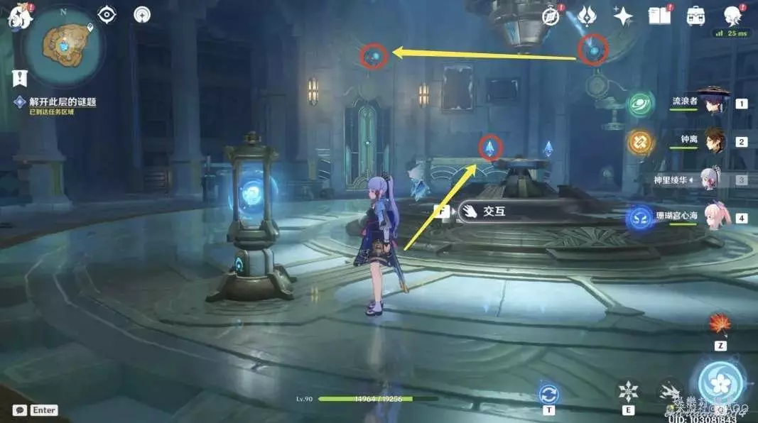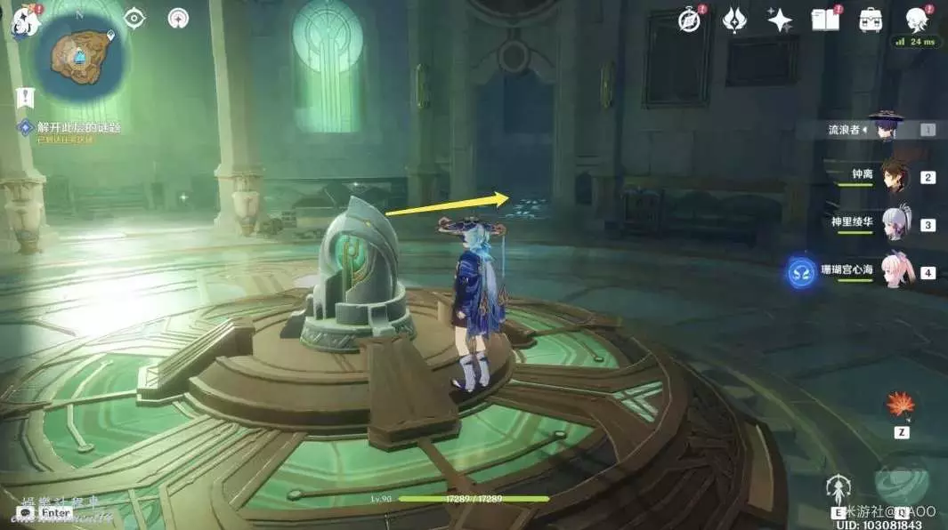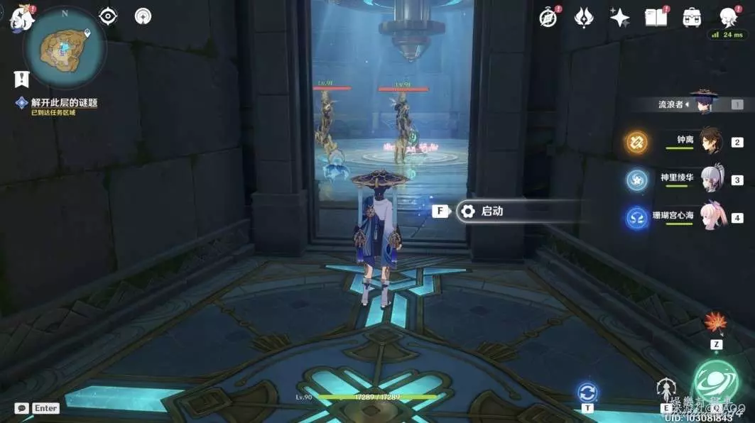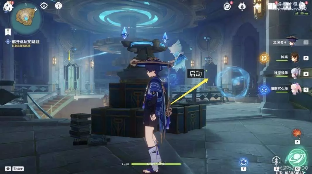 1、互動後,對準左邊晶體長按E,啟動裝置。