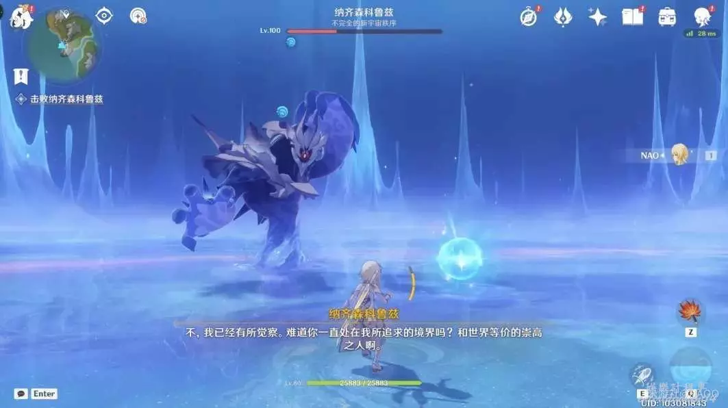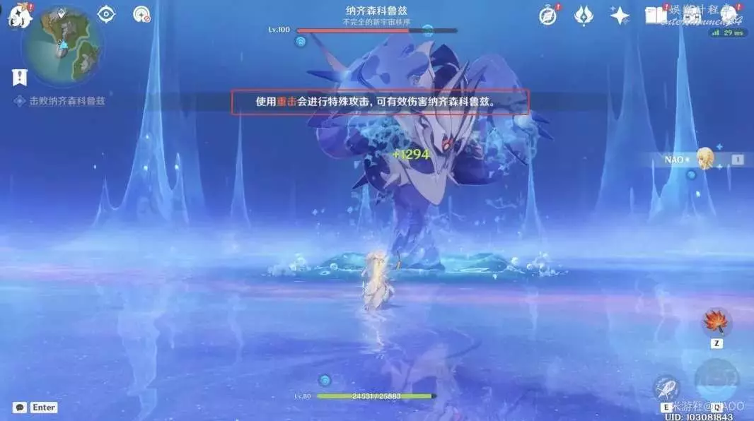 3、然後,進入洋流,躲避空間裂縫,順著洋流回去後,就可以攻擊納齊森科魯茲了。