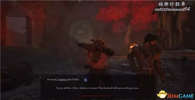之後他將移動到“啟示深淵”的競技場入口附近。與他交談後,你可以前往任意的遺骸休息點進行休息,之後他將離開這裡。