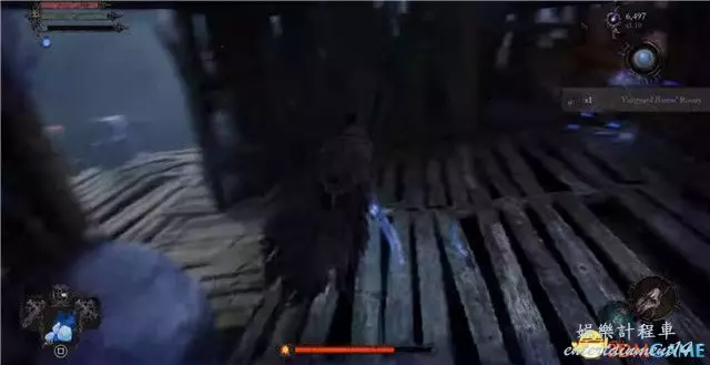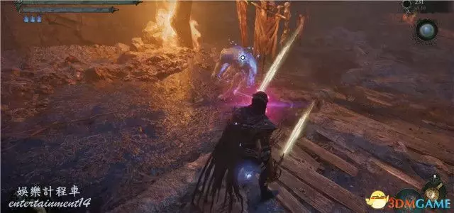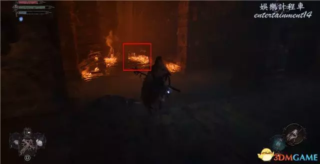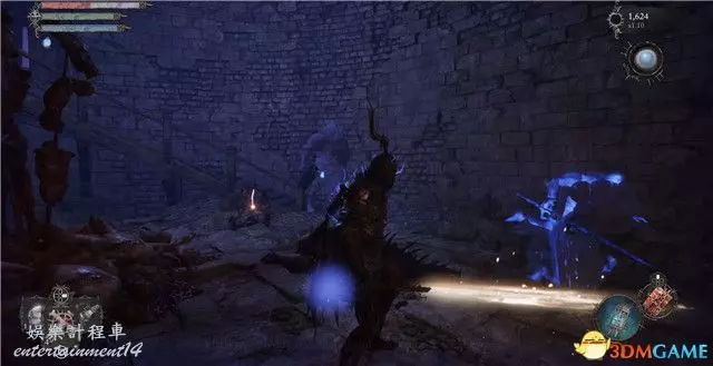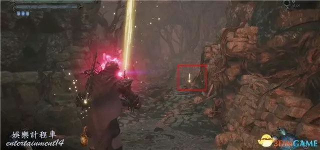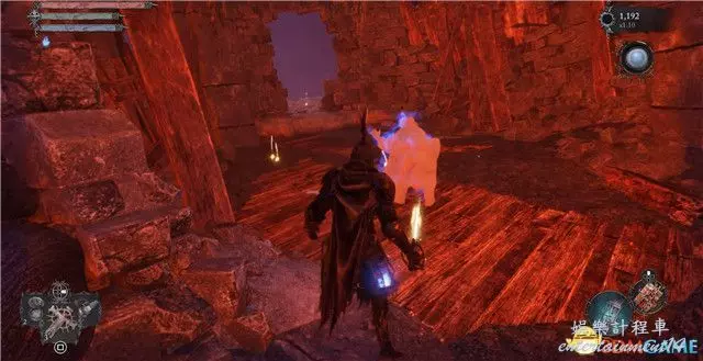 沿著旋轉樓梯朝下觀察,你將找到吊橋和墳墓區域有一個藍色失落之魂,使用汲取技能可以拉開這裡的隱藏道路和浮石,接下來沿著這條道路一直走到盡頭位置,你將找到物品【灼熱的指控】。