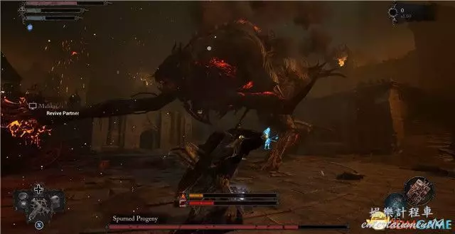 (注意,只有你按照筆者以上的步驟,在每個環節都與鋼鐵行者進行互動,並收集相關的【烙印】升級劇情,才會觸發他在這裡幫助你共同對戰狂喜女獵手的劇情。不然的話,他不會出現,你將在打敗BOSS後直接取走這塊【阿達爾的符文】。)