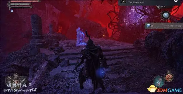 繼續向城堡內部探索並打敗最後的BOSS“破碎的君主”後,前往找到達瑪羅斯的屍體就在阿達爾的靈魂莢附近。