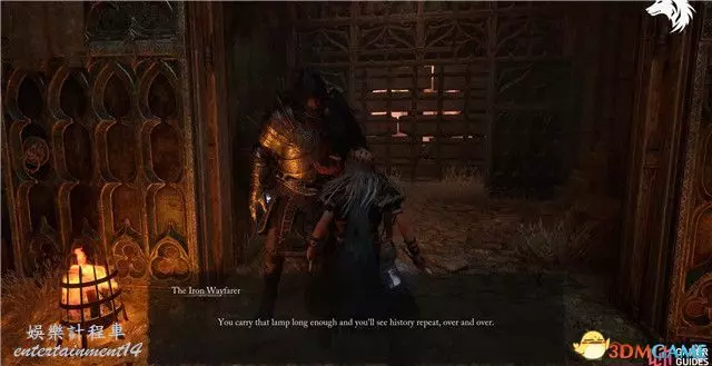 3. 到達卡拉斯下層後,你將在大街主路上找到鋼鐵行者。與他互動後,你將從這場談話中感覺到他正在擔心你作為提燈人的負擔和精神狀態,實際上這是他在反應自己當前的處境。