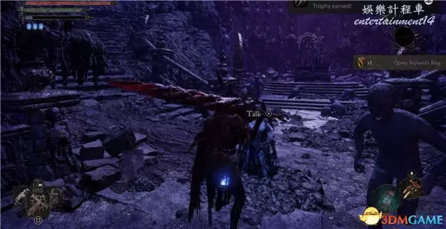 【1】當你到達朝聖者的棲息地下層,在於BOSS“獵犬女主人”戰鬥前,還將遇到門口附近的NPC“受印者達瑪羅斯”,再次與她互動並升級劇情。
