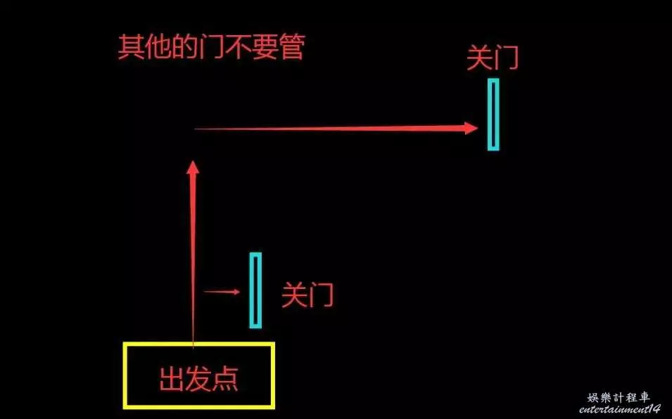 我們以圖下所示方向為面向,製作一個關門示意圖,只需要關上兩扇門即可。