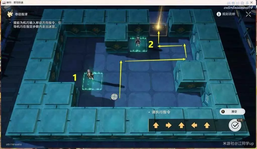 (5)接下來先根據任務指示,進入到前面的【迷宮】裡面,在下圖1和2位置【站立】一下,然後出來後,繼續和【符玄】對話,第3次解密執行指令如下圖