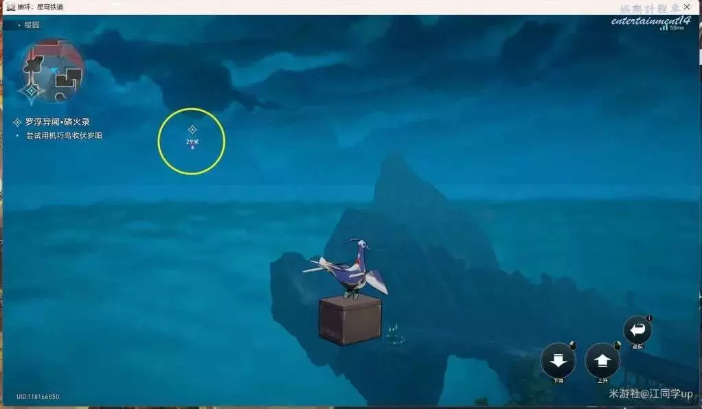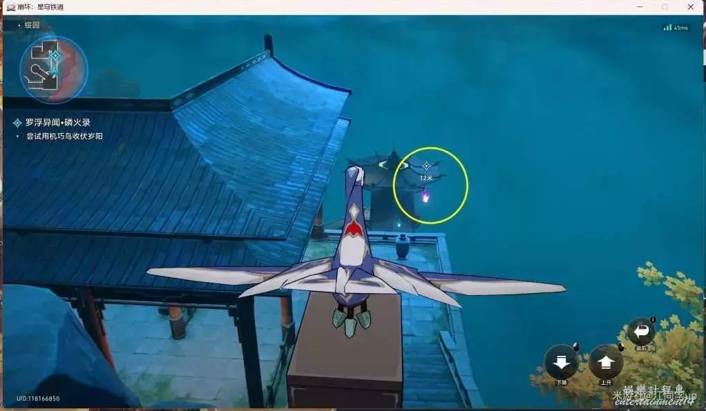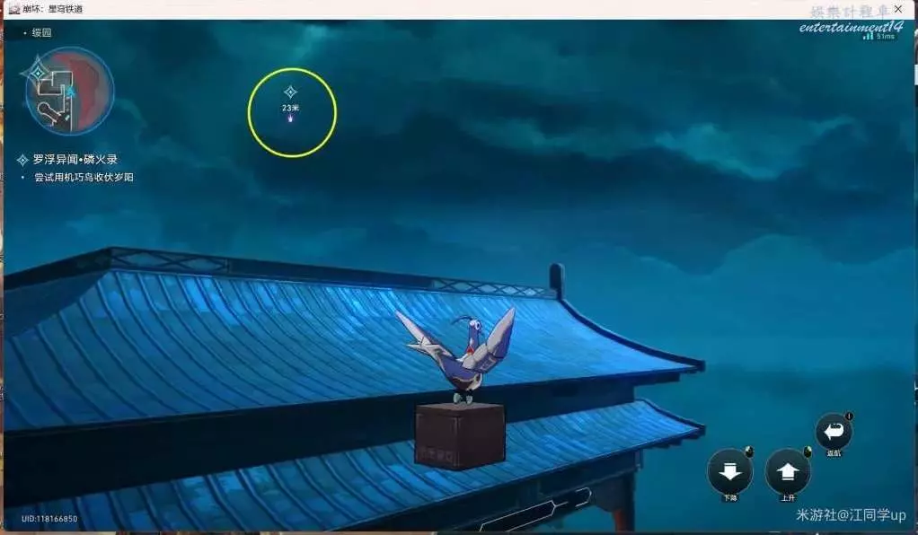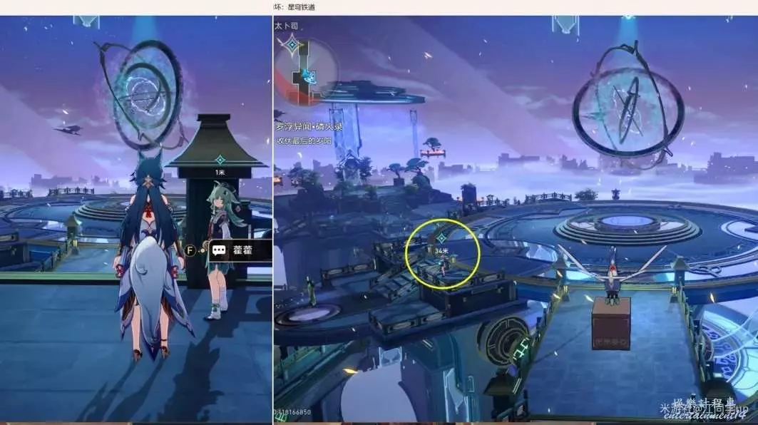 (2)然後追蹤任務,從下圖傳送點右邊做電梯上去,去上面任務點對話2次,第2次對話後,我們會變成技巧鳥,需要收集3個歲陽