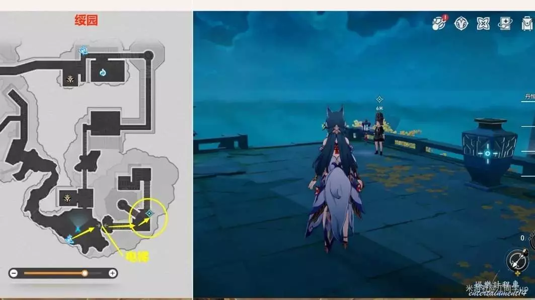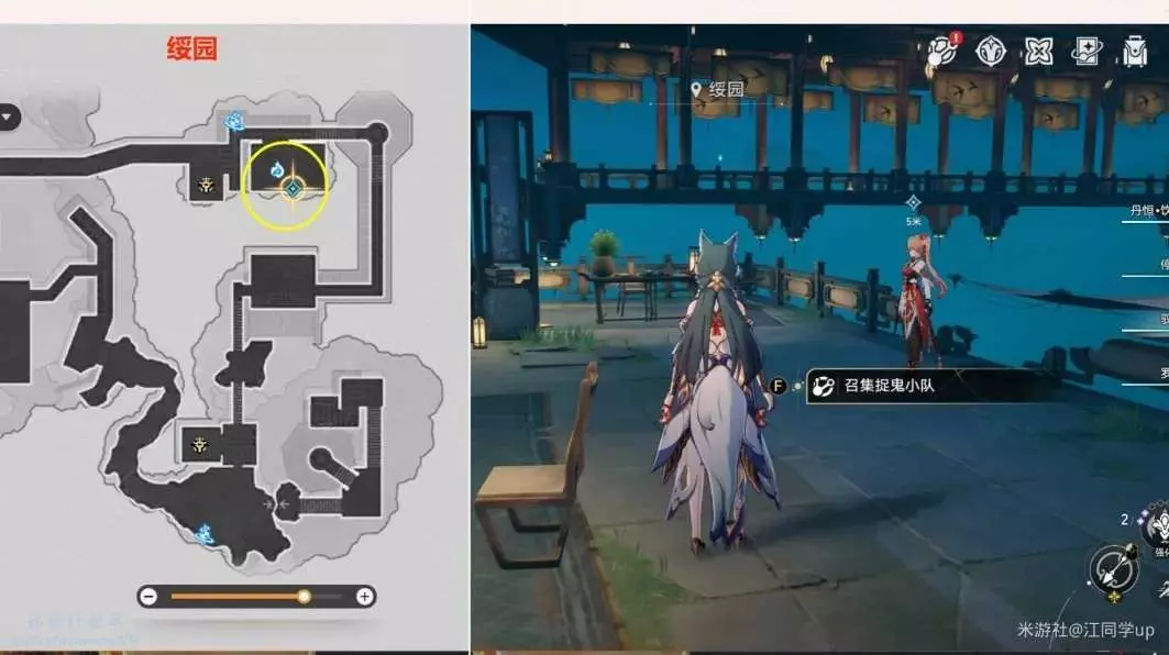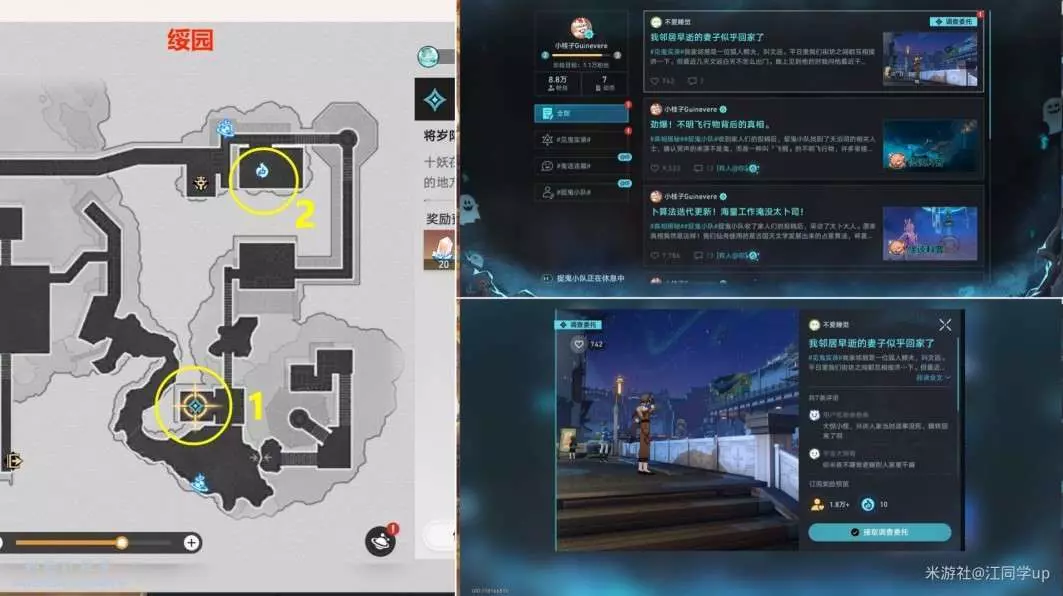 (10)然後追蹤任務,先去【綏園】下圖1任務點,將歲陽放入【鎮妖塔】中後,再發佈一篇帖子後,任務【羅浮異聞·磷火錄】結束