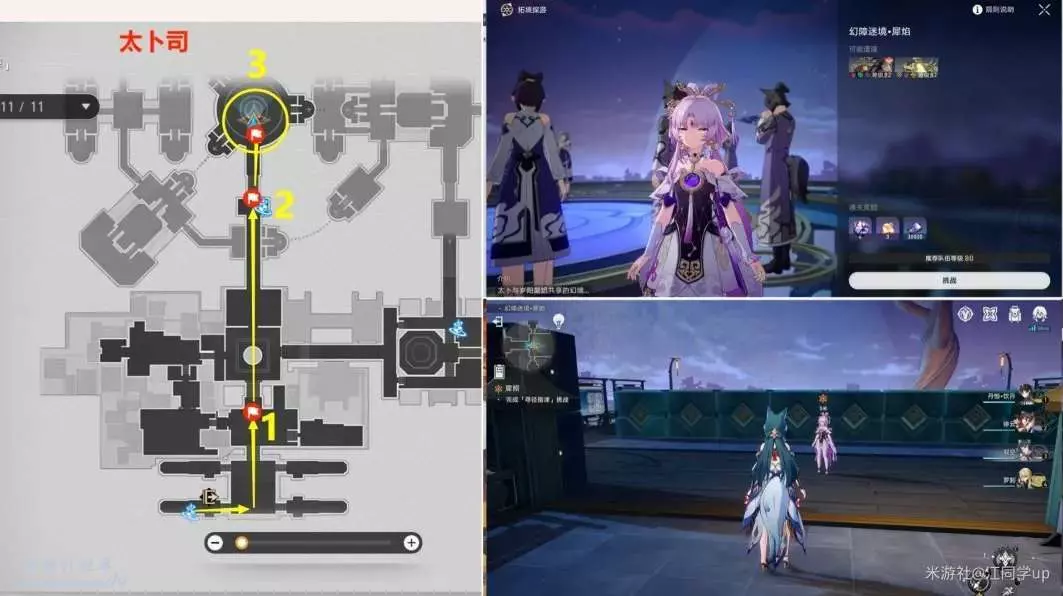 (2)然後追蹤任務來到【太卜司】,依次去1到3任務點對話,最後在3任務點和【符玄】對完話後進入副本,進入副本後繼續和【符玄】對話,需要完成3次解密