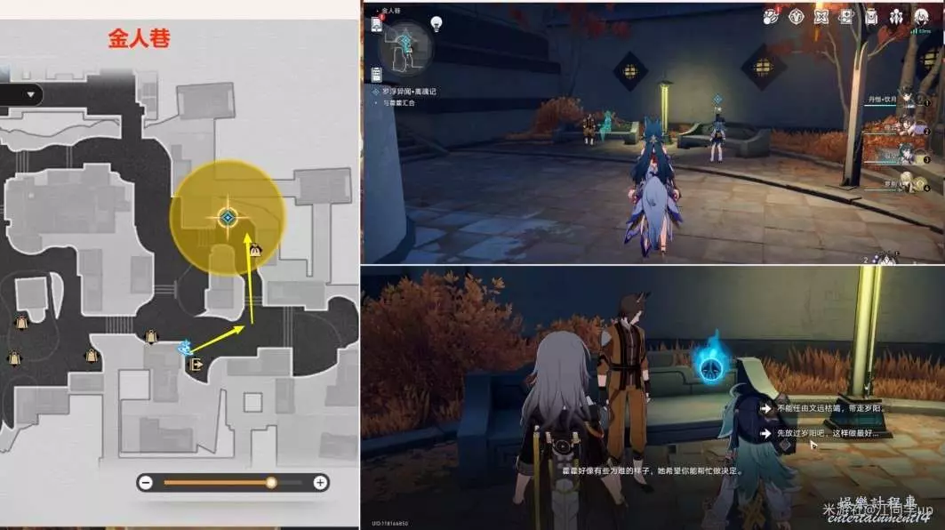 (2)然後追蹤任務,去【金人巷】下圖任務點和【霍霍】對完話,和後面和【文遠】的對話中,如果這裡選擇第1個選項【不能任由文遠枯竭,帶走歲陽】,可獲得隱藏成就《微暗的火》,如果這裡選擇第2個選項【先放過歲陽吧,這樣做最好】,則可獲得隱藏成就《致不滅的你》,2選1成就,成就需要完成該任務後,才會獲得