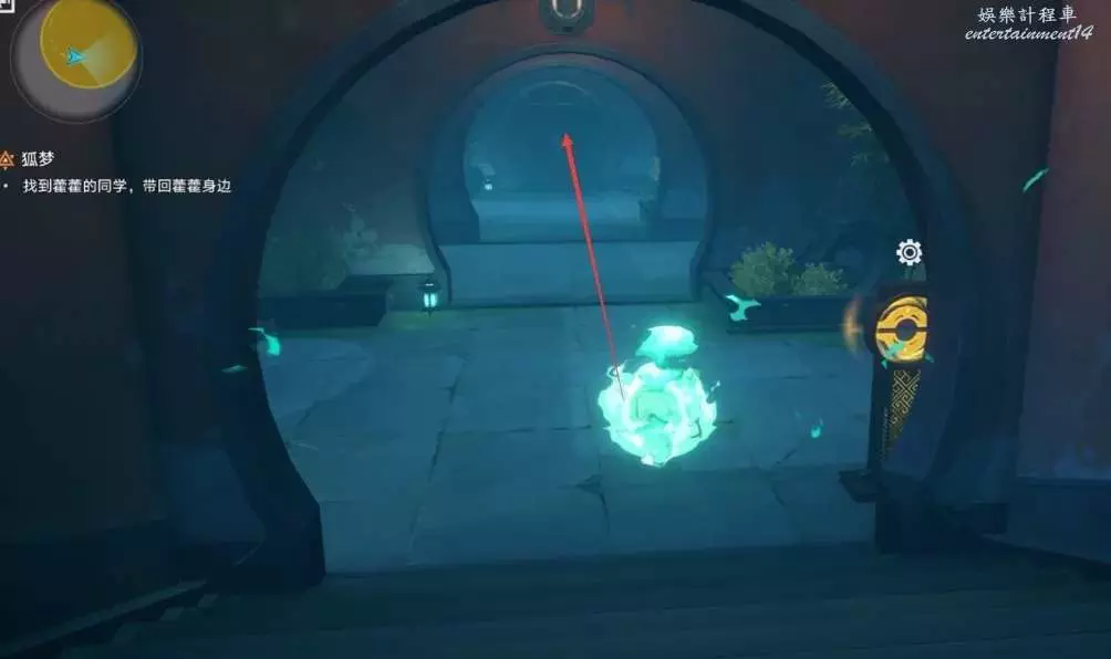 根據任務指引,從藿藿房間出來直走,第一個路口左轉,找到帶有鬼火的門穿過去。
