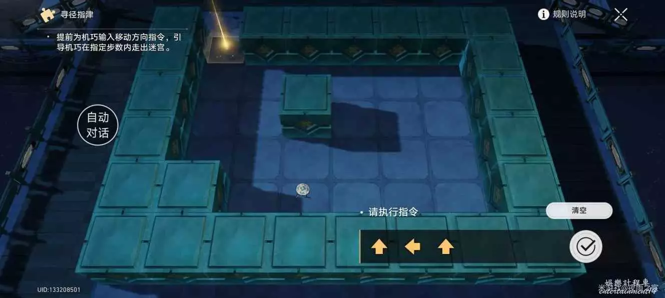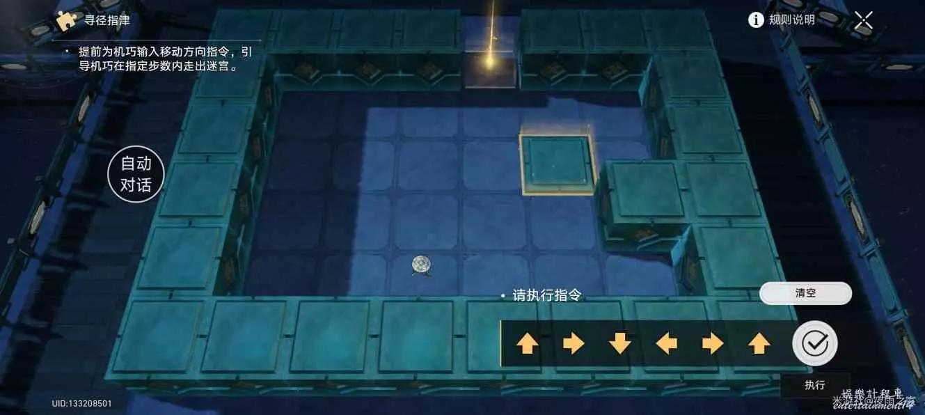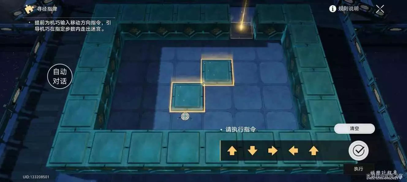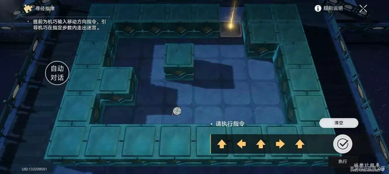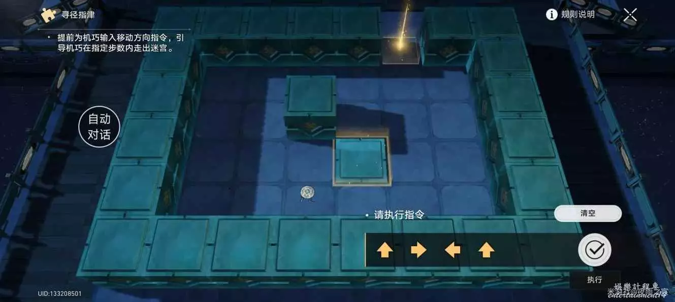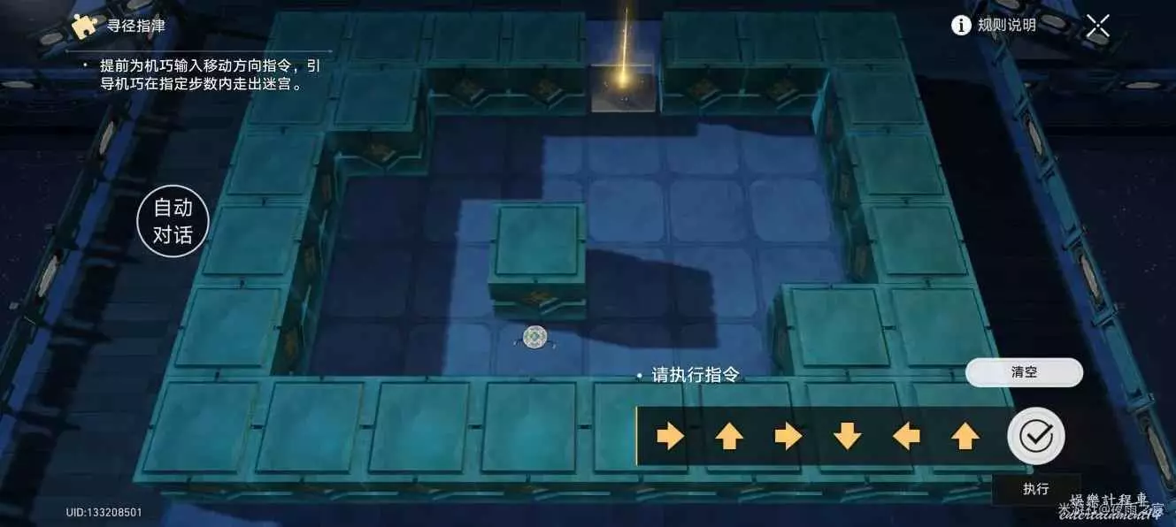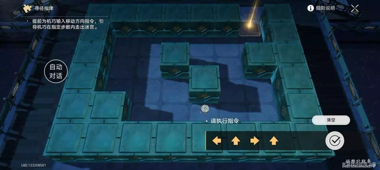 我們接取《羅浮異聞·棋鬼》任務後,根據任務提示,開始挑戰棋鬼,答案為:左、上、右、上。