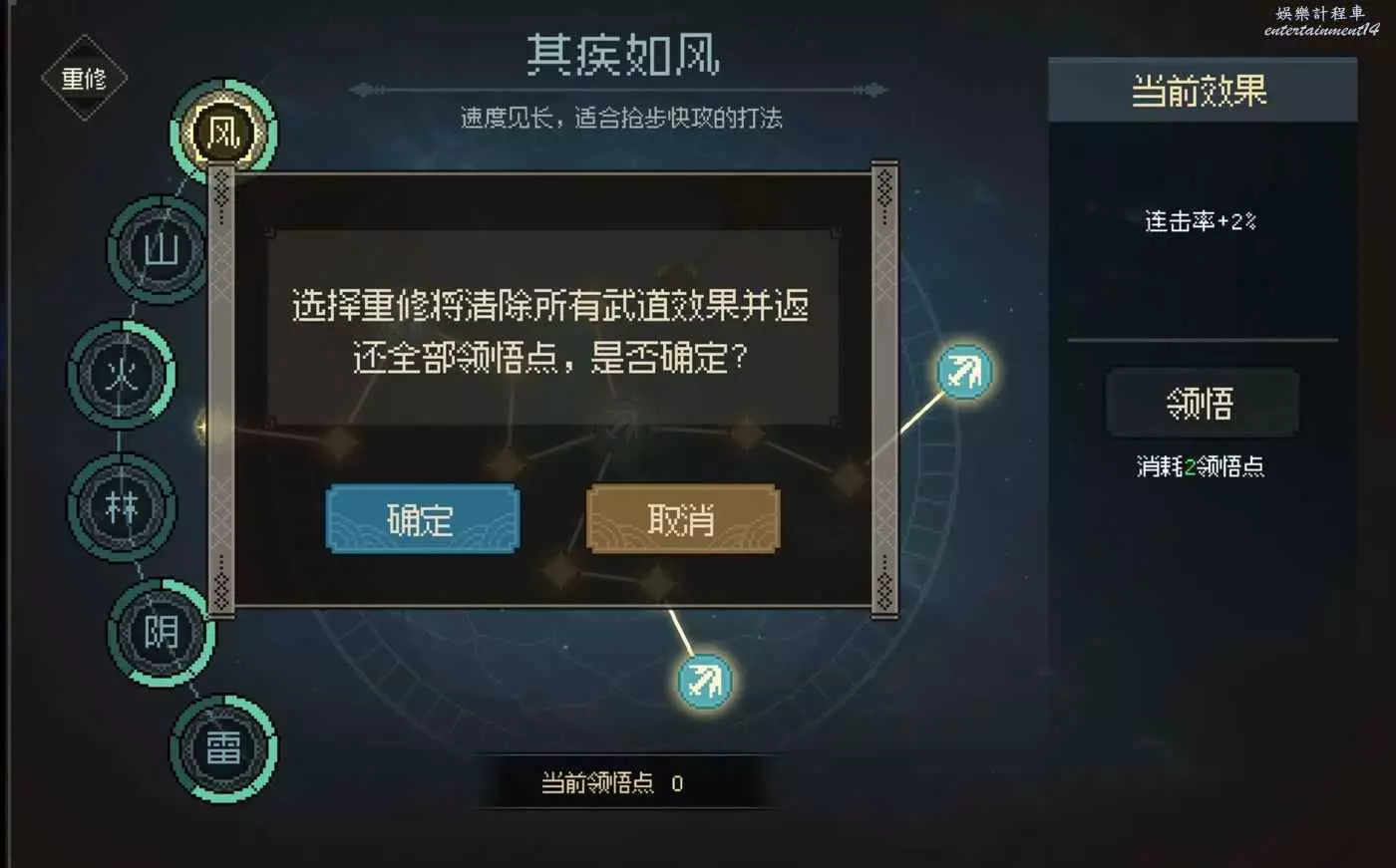 既然武學可以Rebuild,那麼主角的成長屬性自然也需要能隨之重置。隨取消武學遺忘限制版本,我們一併增加了主角武道洗點功能,主角的武道可以任意進行重置。