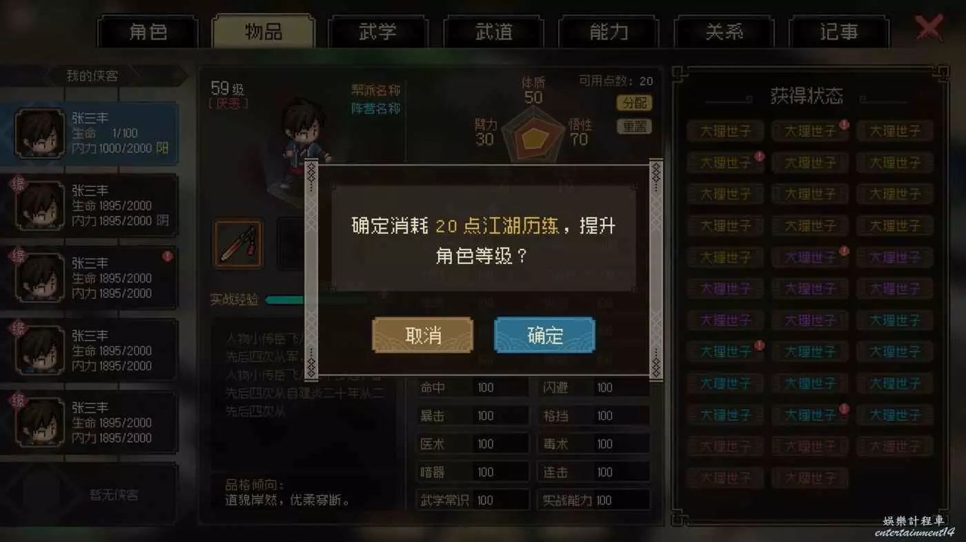 ——通過完成江湖事件, 玩家可以為團隊儲存“經驗池”,根據自己的想法分配角色經驗和升級武功;