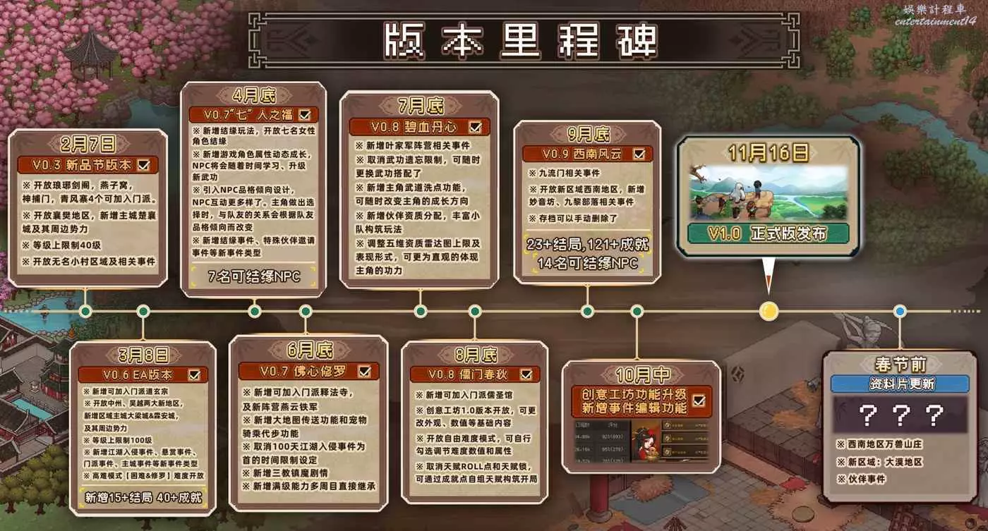 對於轉正來說,1.0並不是《大俠立志傳碧血丹心》的終點。這次轉正後,我們預計還會在春節前發佈一個新的大資料片更新,請大家不要擔心!