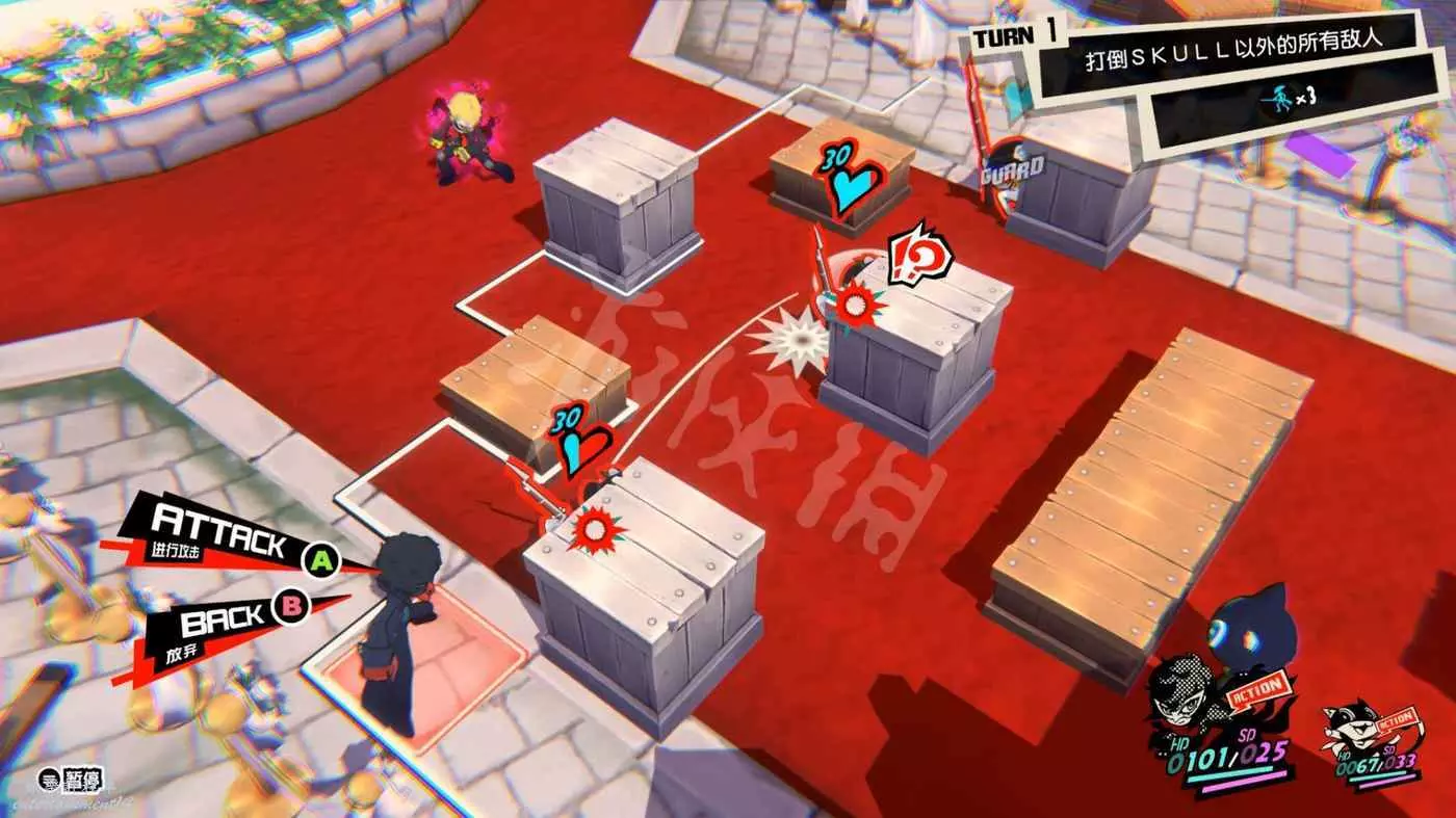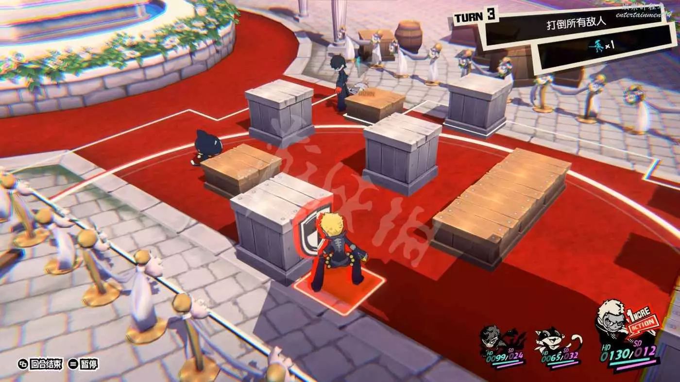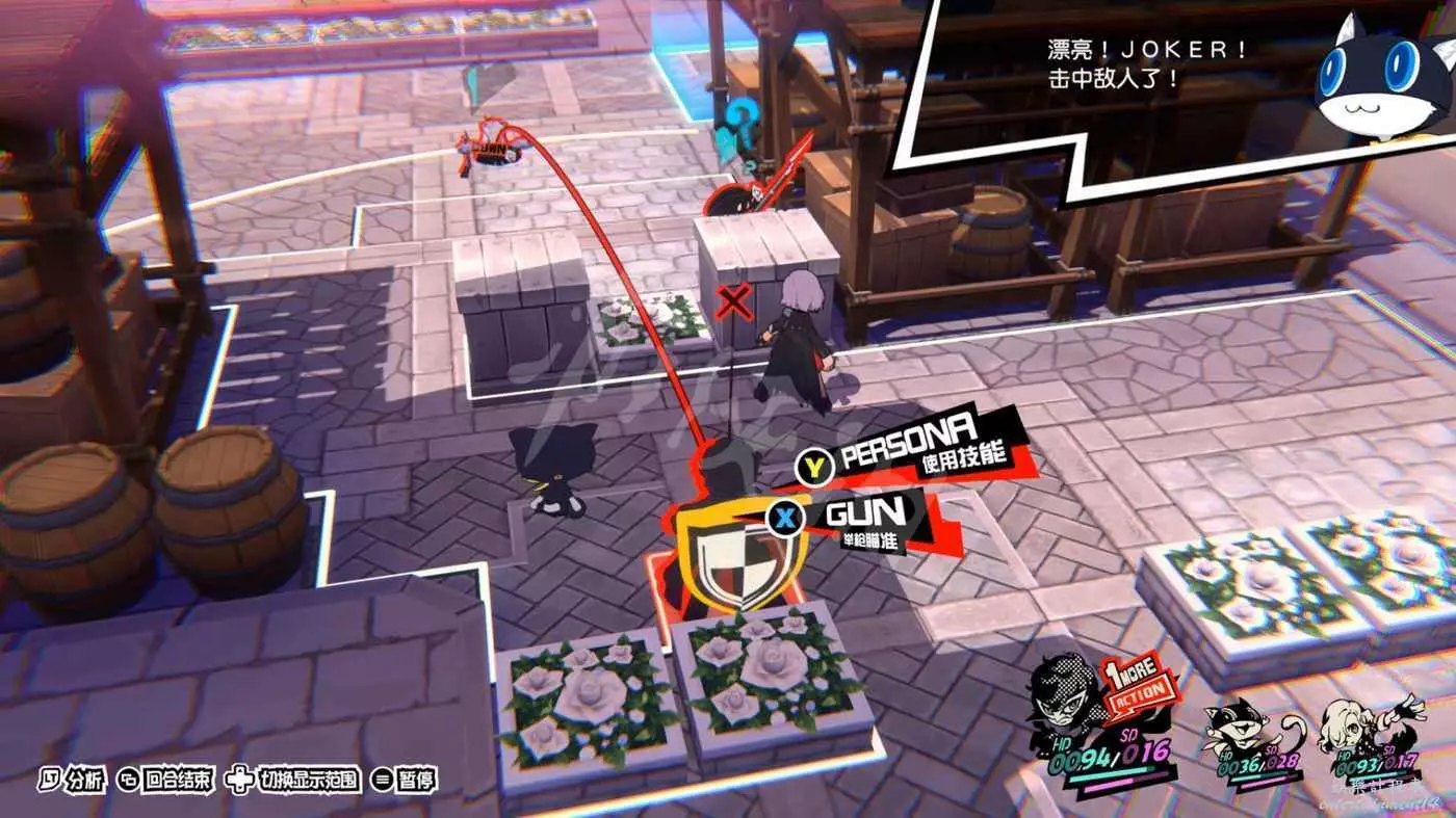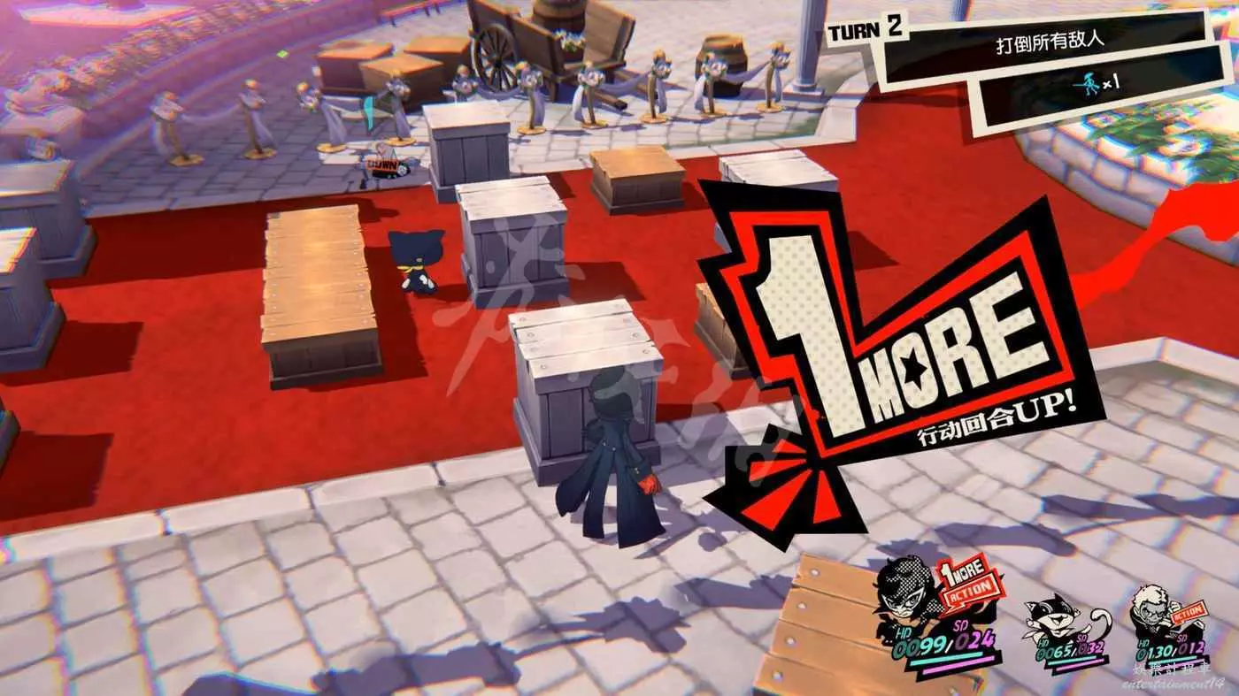 這一關SKULL會離隊,只剩下JOKER和摩爾迦納,但戰鬥不算太難,控制任一角色用近戰將最左或最右的槍手往另一邊打,然後再用剩下的角色打出多次“1More”收割,第一回合就可以解決掉1-2個敵人。