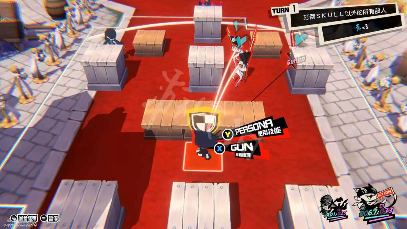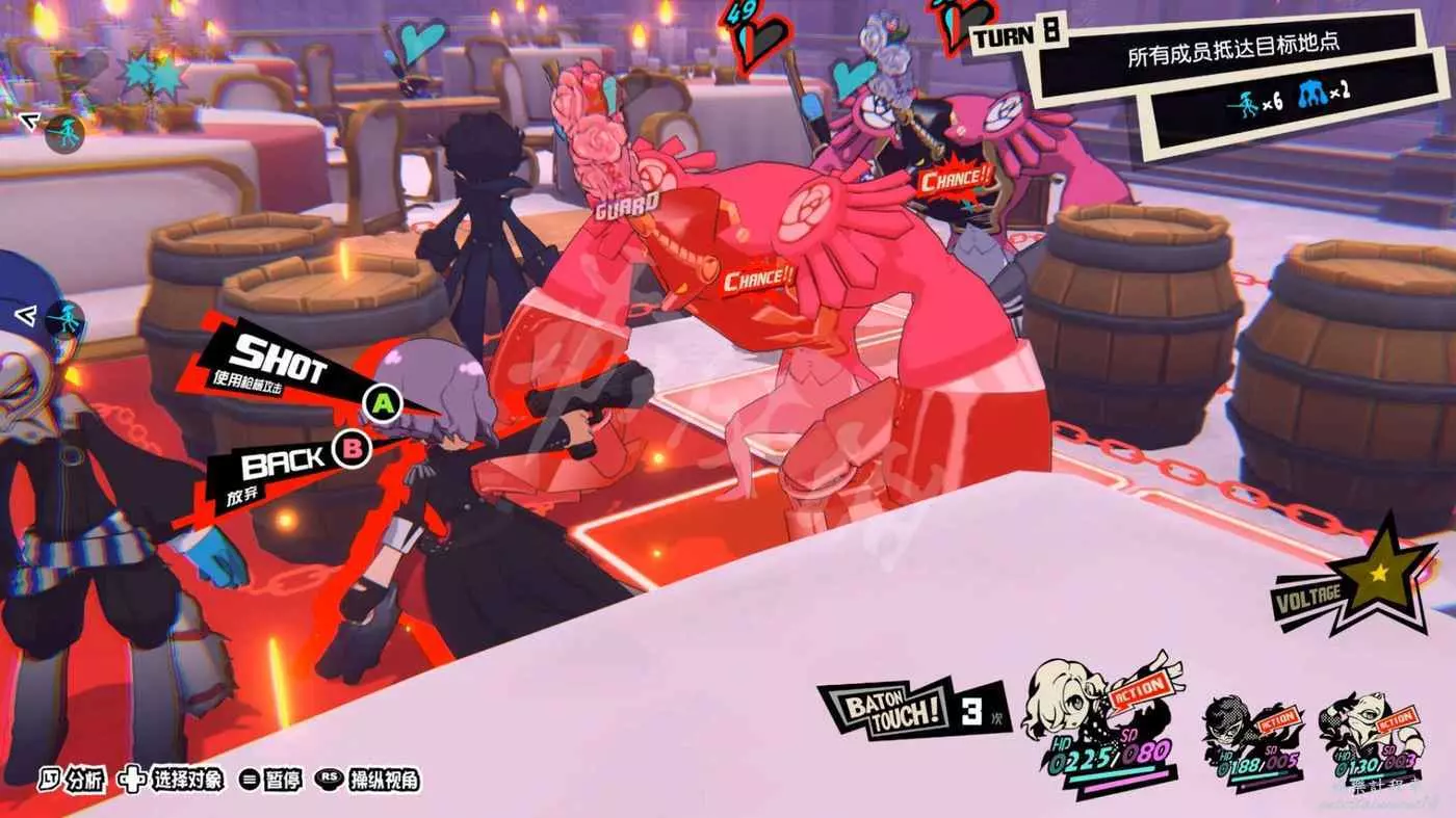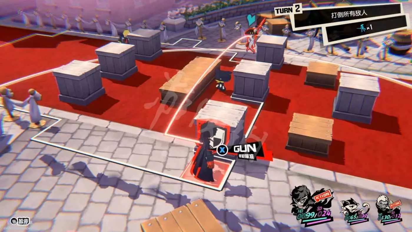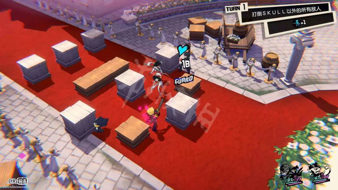 這一關SKULL會離隊,只剩下JOKER和摩爾迦納,但戰鬥不算太難,控制任一角色用近戰將最左或最右的槍手往另一邊打,然後再用剩下的角色打出多次“1More”收割,第一回合就可以解決掉1-2個敵人。