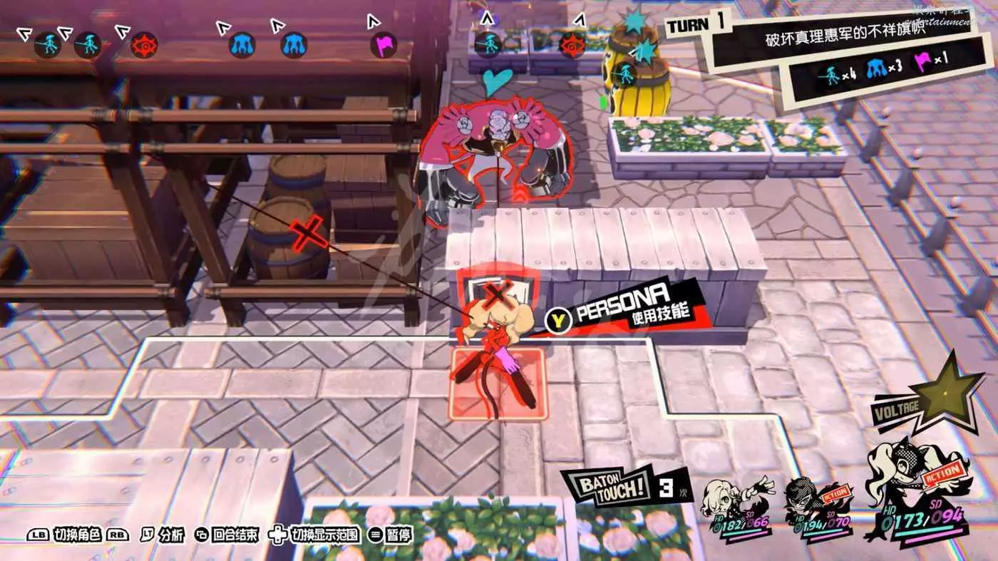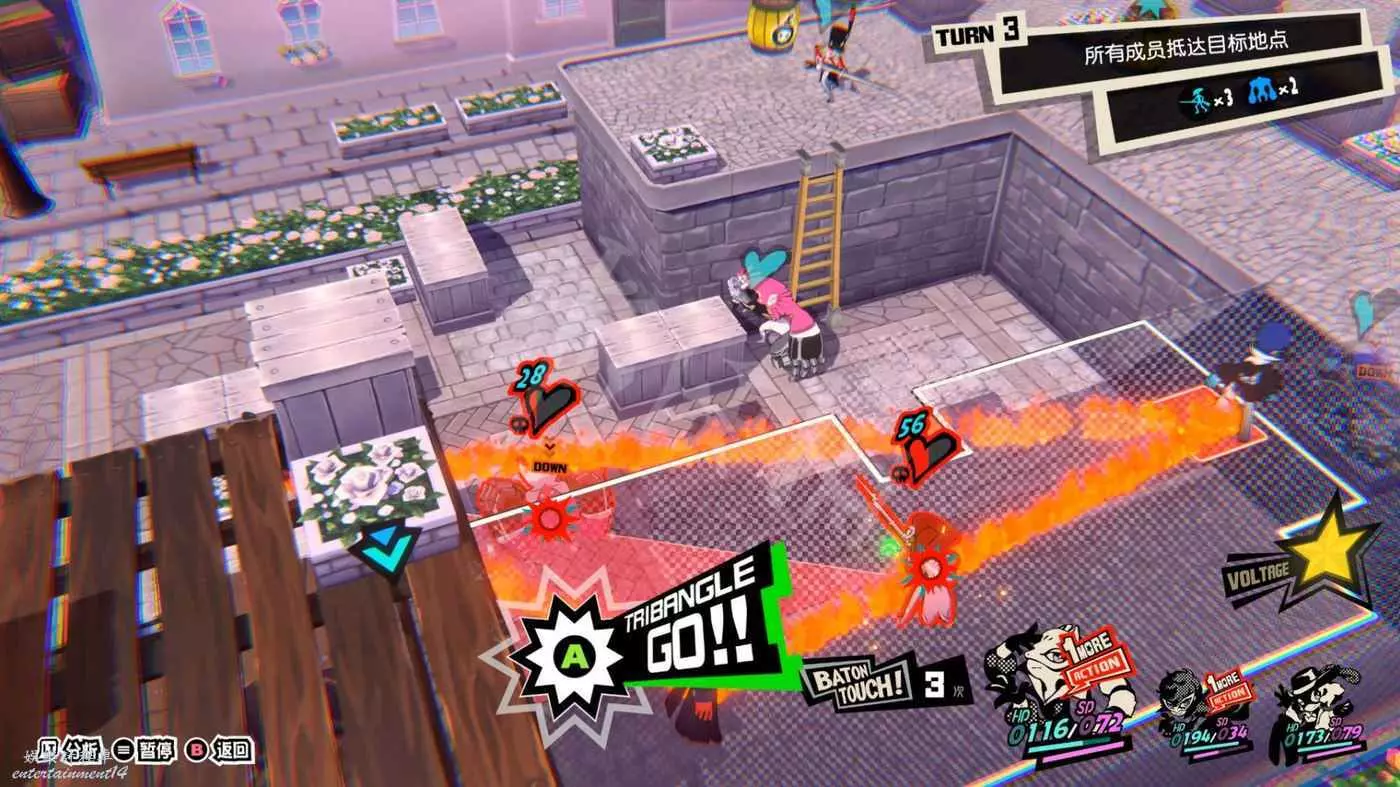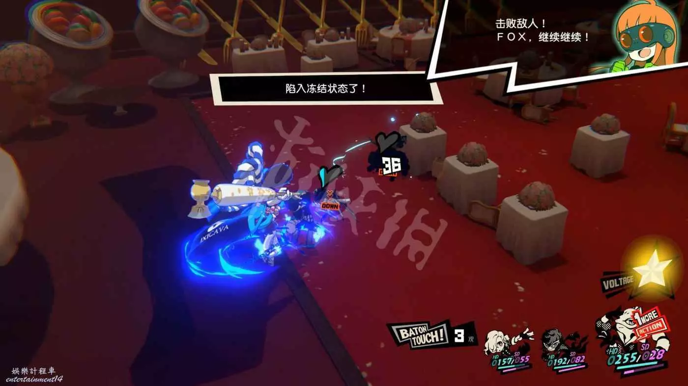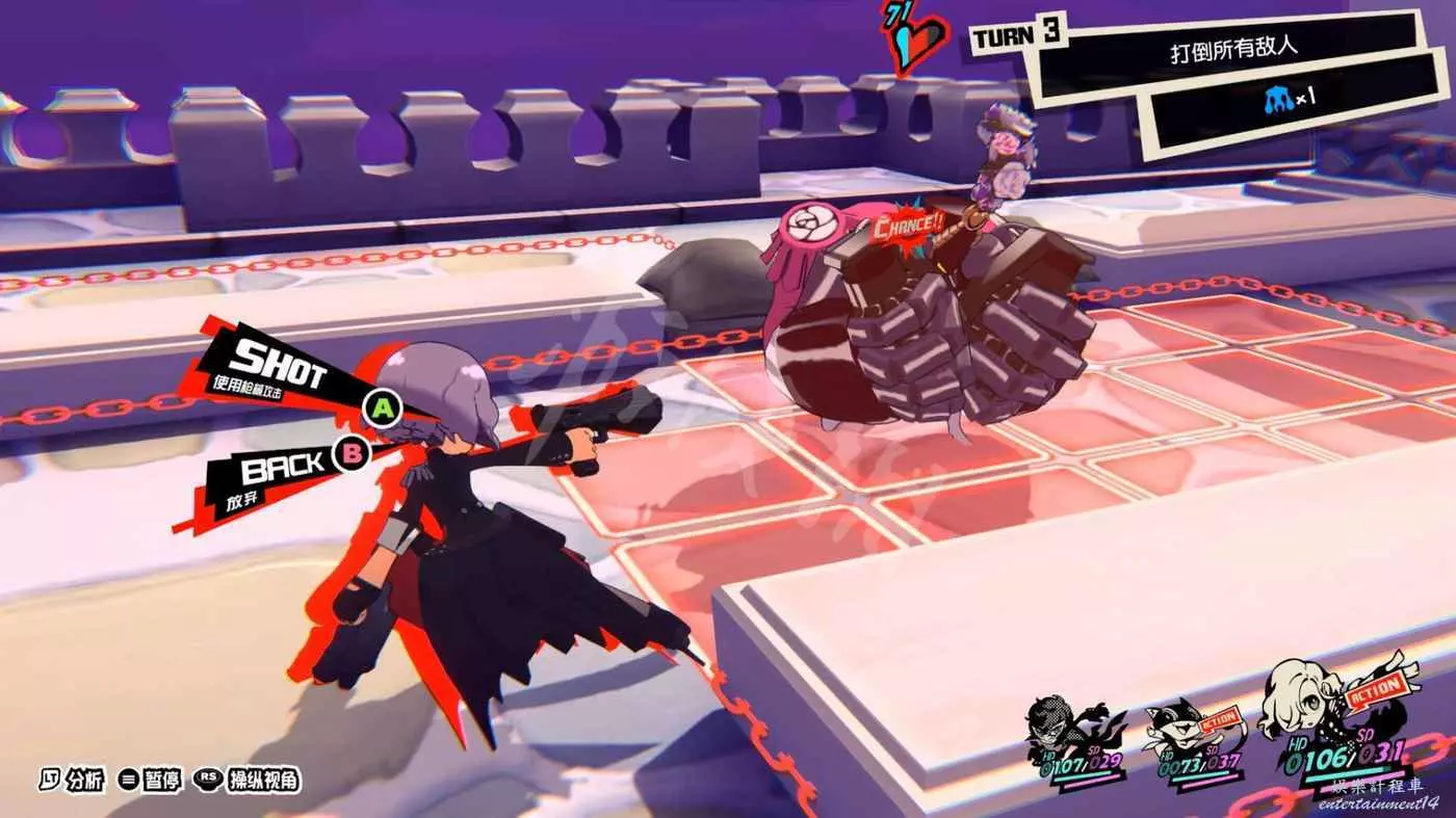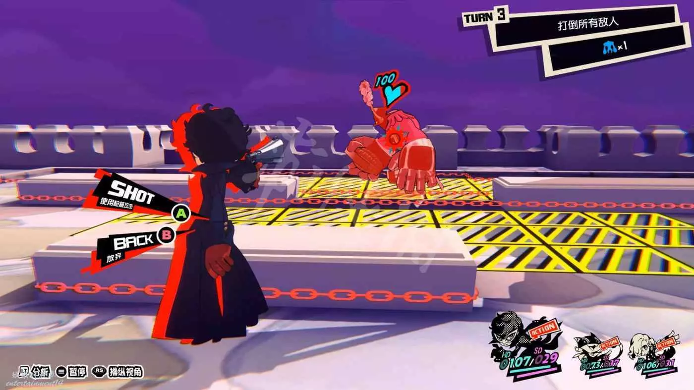 這一關SKULL會離隊,只剩下JOKER和摩爾迦納,但戰鬥不算太難,控制任一角色用近戰將最左或最右的槍手往另一邊打,然後再用剩下的角色打出多次“1More”收割,第一回合就可以解決掉1-2個敵人。