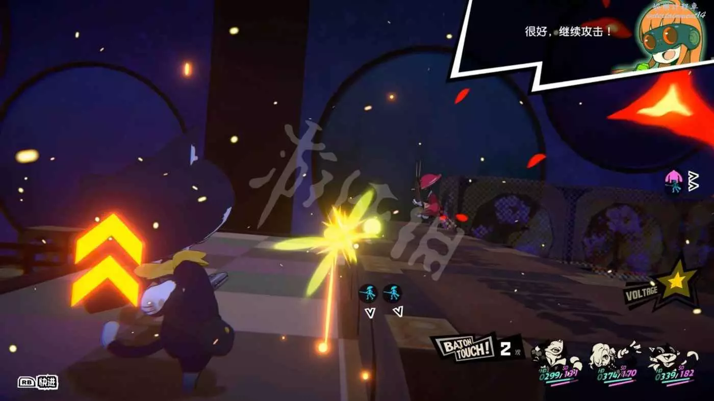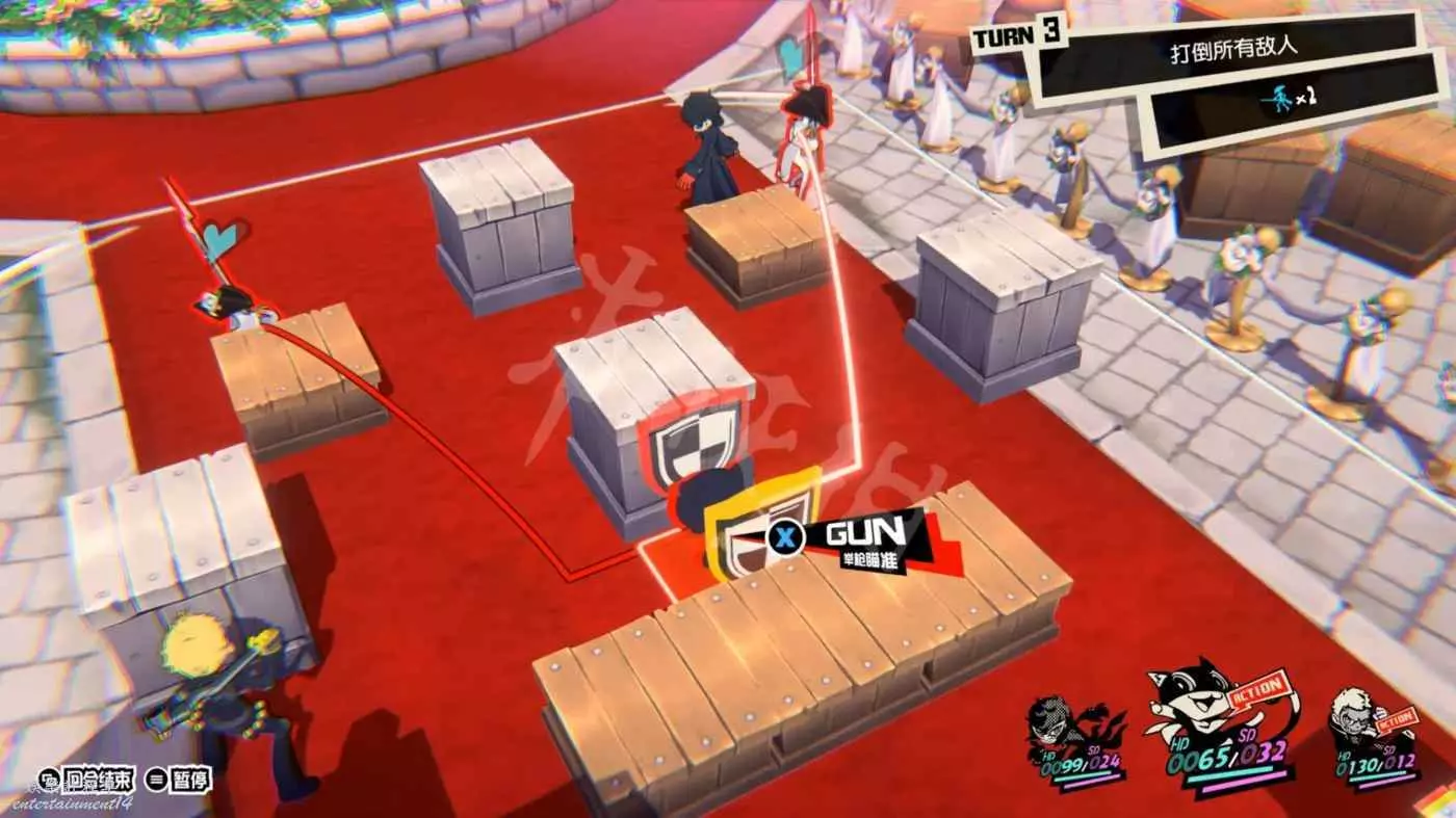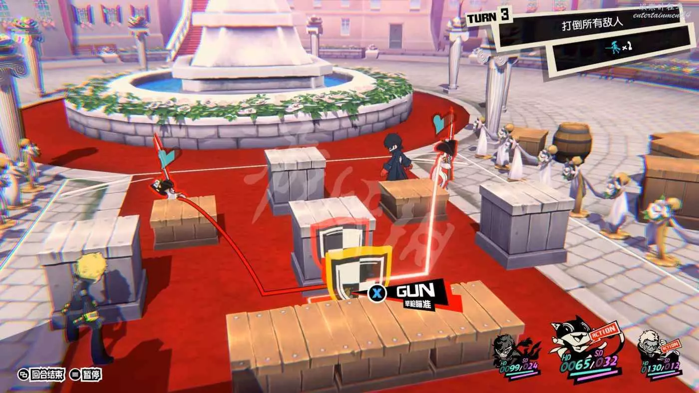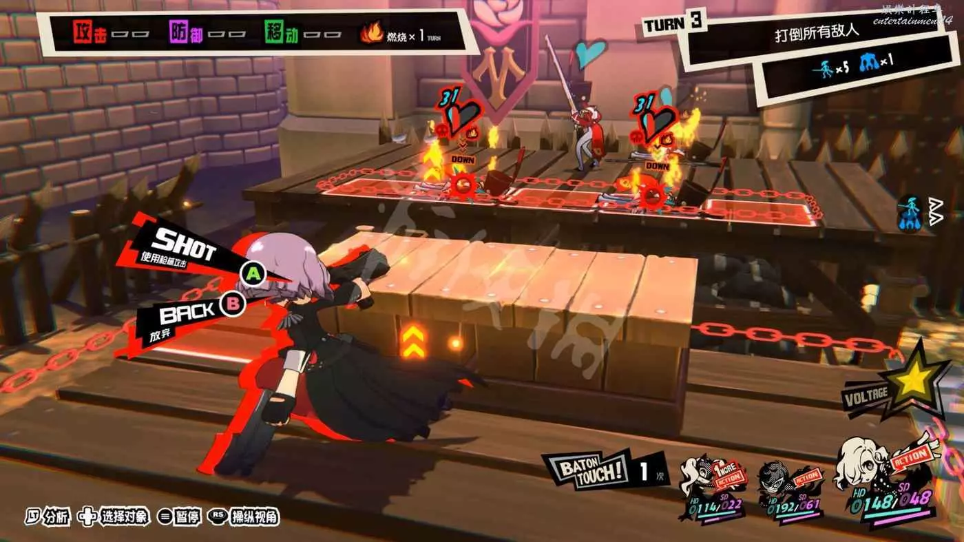 這一關SKULL會離隊,只剩下JOKER和摩爾迦納,但戰鬥不算太難,控制任一角色用近戰將最左或最右的槍手往另一邊打,然後再用剩下的角色打出多次“1More”收割,第一回合就可以解決掉1-2個敵人。